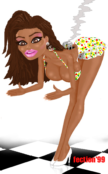 "Oh gee! What a mess!" Candy gasped, looking dispirited, "And Charlie will be home soon, too!" She bent forward at the waist and began collecting the magazines once again. Camilla eyed her suspiciously, then got an idea. She pushed the second stack of magazines down off the shelf. The scantily clad voluptuous girl had not yet rectified the first mess, but she stood and looked down around her.
