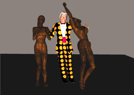 “Well, lets hope whoever it is can be civil,” agreed Saeko. “From the Anderson mansion, this is Saeko Tachi-” the reporter cut herself off as she screamed. The cameraman had suddenly been struck by a green beam and had flown out from nowhere that they could see. The man gasped once as a strange transformation took place. He'd been struck in the hip and had done little more than twitch. The point of impact was no longer his sweater, but what looked like part of a wood carving. As James, Lilly, Saeko and the security guards watched in horror, the wooden texture swept over the cameraman in less than a few seconds, turning his flesh and clothing alike into solid wood. Even the camera was transformed as the transmission died.