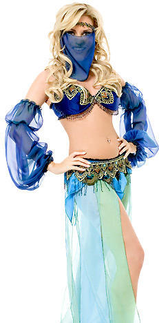 Stephanie screamed and jumped from her seat, turning to the source of the new noise. The curvaceous woman she saw, clad in the blue veils and gold tassels of a genie, stood along the back wall, smiling and posing for the writer.