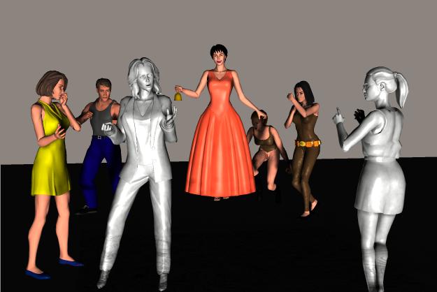 Nighttime cast aside the microphone and stepped off the stage, only to float in the air, just above the heads of the crowd. The avatar then called up a gust of wind which plucked up the helpless Maria Chavez, the beautiful Latino woman wearing a short purple and red strapless dress. Maria hung in the air near Nighttime, her face showing a heart-warming smile as she stood in a neutral pose, having not been given time to react to the appearance of the villain. “You all praise women such as this,” spat Nighttime, stepping to circle Maria, though she stood only on air. “You worship beauty as well as money, and use your fortunes to try and buy it. You have become lost to simple pleasures and temptations.”