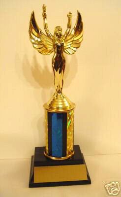Tina remembered how everyone desired her how they all wanted to hold her and touch her. She was wanted as she’d never been wanted before! Every touch was ecstasy to her and she craved the attention so! She saw how she looked all gold with arms and wings outstretched. Yes, wings she loved having wings it made her feel so precious like she was gift from heaven to this person. She was a gift to show how her new owner had succeeded where others had failed. Tina was an avatar for a companies appreciation to their best salesman so it was only fitting that the best should receive her she thought. “After all I’m worth so much only someone who’s the best should have me!” is all the golden trophy could think as she was placed back on the shelf where she was kept.