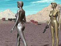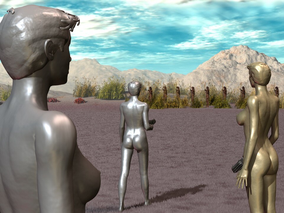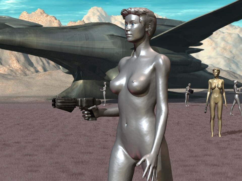 Helen instructed a gynoid to approach the primitive humans, to test their response and their capabilities. |