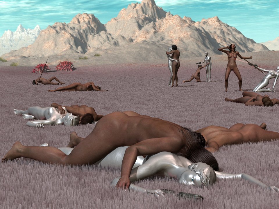 With Helen gone, Dawn was able to influence the other gynoids. She showed them what she felt. She encouraged them to enjoy the touch of the passionate savages, and to care for them when they fell.