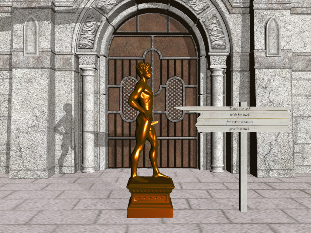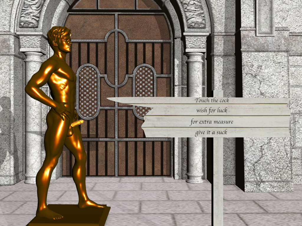 “They say it’s lucky if you touch it,” she tells him. “That’s crazy,” he says. “Where did you hear that?” “It’s right here in the guidebook. See? And look, you can see where it’s gone shiny from people touching it.” It’s a pleasant night for a stroll. The moon is almost full, casting a silver lane across the water of the harbour. With a sly grin she leans toward him and says, “You do want us to be fertile, don’t you? Go on. I dare you.” “Oh, no,” he replies, laughing in embarrassment. “There’s no way I’m gonna put my hand on some guy’s dick!” That sets her laughing too. “Oh, come on,” she says. “It’s not ‘some guy,’ it’s only a statue.” If only they knew. If only there was some way I could tell them... “I’m still not doing it,” he says. “It’d just feel... weird, you know?” “Look, if it helps, I won’t tell anyone, all right? There’s nobody about right now. Nobody will see. Why don’t we do it together?” “Uh... I don’t know... it’d still be weird, like... I dunno...” “What... like you’re gay or something?” She laughs as his face turns scarlet under the garish street light. “Hey, don’t worry about that. I think you pretty much convinced me that you’re not gay last night... and this morning... and this afternoon... and this evening... and twenty minutes ago...” And she leans in to kiss him. I suspect that if they weren’t in such a public place she’d be persuading him to convince her again right here and now. I certainly wouldn’t mind watching. As it is, they spend a few minutes engaged in some very heavy petting, and I do enjoy watching them. I take a certain voyeuristic pleasure in it. I can see them, but they can’t see that I’m seeing them. I do confess to a pang or two of envy, though. They have so much freedom, so much vitality, so much potential, so much sex... And what do I have? Nothing but my thoughts and my senses. Not that they don’t provide some compensation. “Now,” says the girl as they sway gently together, “are you sure you don’t want to change your mind?” “Well... no,” he says, “it still wouldn’t feel right. Yeah, I know it’s not a real dick, but you know what they say... if it looks like a dick and quacks like a dick...” She chuckles at that. I appreciate the pun too, although I’m not even sure what language they’re speaking. Somehow that doesn’t matter. I can always understand. “All right, then,” she says. “I won’t force you to do it. But that’s not going to stop me.” So saying, she steps forward, reaching out her hand. If I had a heartbeat, it would be pounding with feverish anticipation right now. Time seems to slow down, stretching the moment to eternity... I don’t remember how long I’ve been like this. Not since 1887, I’m certain, and probably not even as recently as 1954, yet every day locked in this bronze shell can seem like an eternity. I’m not able to move. I’m not able to speak. I’m not able to sleep. I’m not able to tell anyone that I’m alive. I’m even embarrassed about being naked in public and not being able to cover myself up, even though I know people think I’m only a statue. What’s more, I know - somehow I know with absolute certainty and conviction - that this is it for me. This is forever. I will never again move. I will never again be free. I will never again be anything but a naked bronze statue. I have tried to tell myself that this is impossible, that flesh cannot turn to bronze, or even if it could, that bronze cannot think and see and feel. I tell myself that I must be hallucinating, that it cannot be real, and soon I will wake up and discover that it has all been nothing but a fever-dream. Yet if it is only a dream it refuses to fade, and I remain as solid and immobile as ever. How did I become a statue in the first place? I can’t remember, no matter how I try. I can only entertain wild speculations, none of which seem plausible. Maybe I somehow offended a witch, or begged a djinn for immortality and was granted it in this helpless fashion. Or perhaps I’m the victim of a scientific experiment gone bizarrely wrong. Or maybe, in an infinite universe in which anything can happen, it just happened, and I am the result of some random quantum fluctuation. And then again, maybe I was never alive at all. I certainly can’t remember anything about my past life. Maybe I am really just a statue that has somehow become conscious and longs to be able to move. Who knows? Maybe all statues are alive inside, yearning like me for the freedom they will never attain. Still, however I came to be a statue, there are consolations, as I mentioned. My sense of touch is intensely heightened. The slightest breath of wind is like a lover’s caress, the warmth of the sun on my body fills me with euphoria, and a single raindrop sets my entire body tingling. As for the touch of a hand... Yes, I think. Yes. Time, don’t stop. Let her touch me. Please. Time resumes. The girl’s fingers gently stroke my bronze penis and balls, unleashing a flood of ecstasy. Pleasure builds and builds and builds, slowly and inexorably leading to a climax far beyond any flesh and blood orgasm (and how could I know that unless I had been flesh and blood once?). The climax disperses in a series of euphoric pulses that ripple outward from my genitalia to the rest of my body. But it’s not over yet, far from it. The cycle begins again, ecstasy waxing to an even more powerful climax than the last one. If I could move I would be moaning with ecstasy, fiercely caressing the girl and planting bronze kisses upon her lips and elsewhere. What could her boyfriend do to stop me? He couldn’t hurt a bronze man. But I can’t move. I can only stand here and take it as more and more orgasmic cycles wash over me. I silently bless the author of that guidebook and pray that it will never be censored. How many times does that one touch