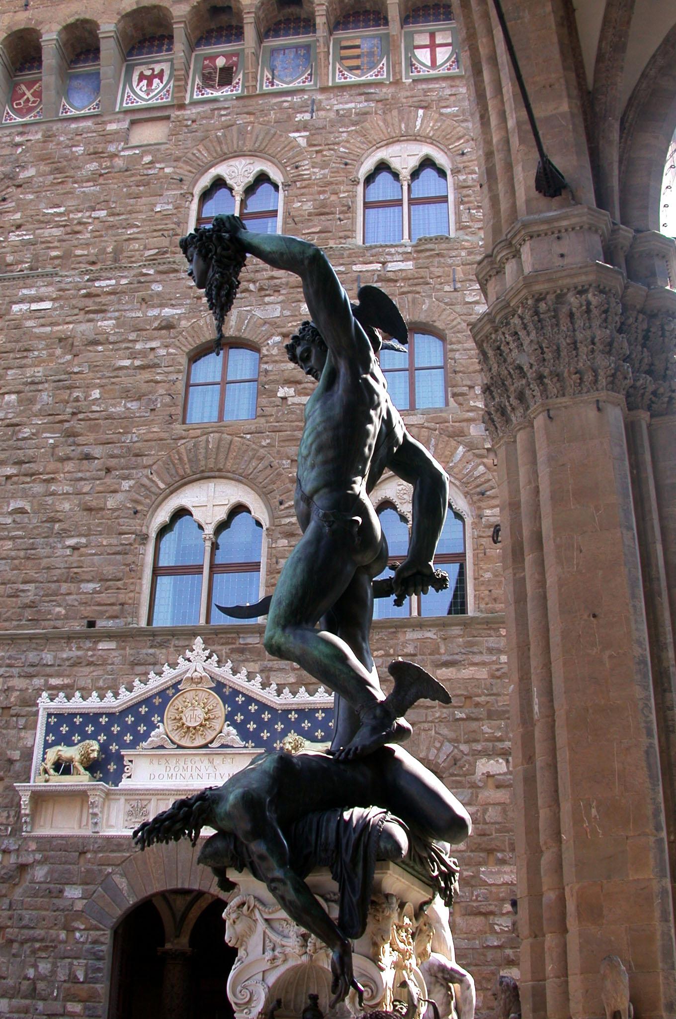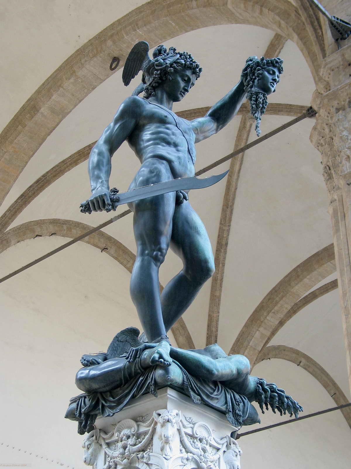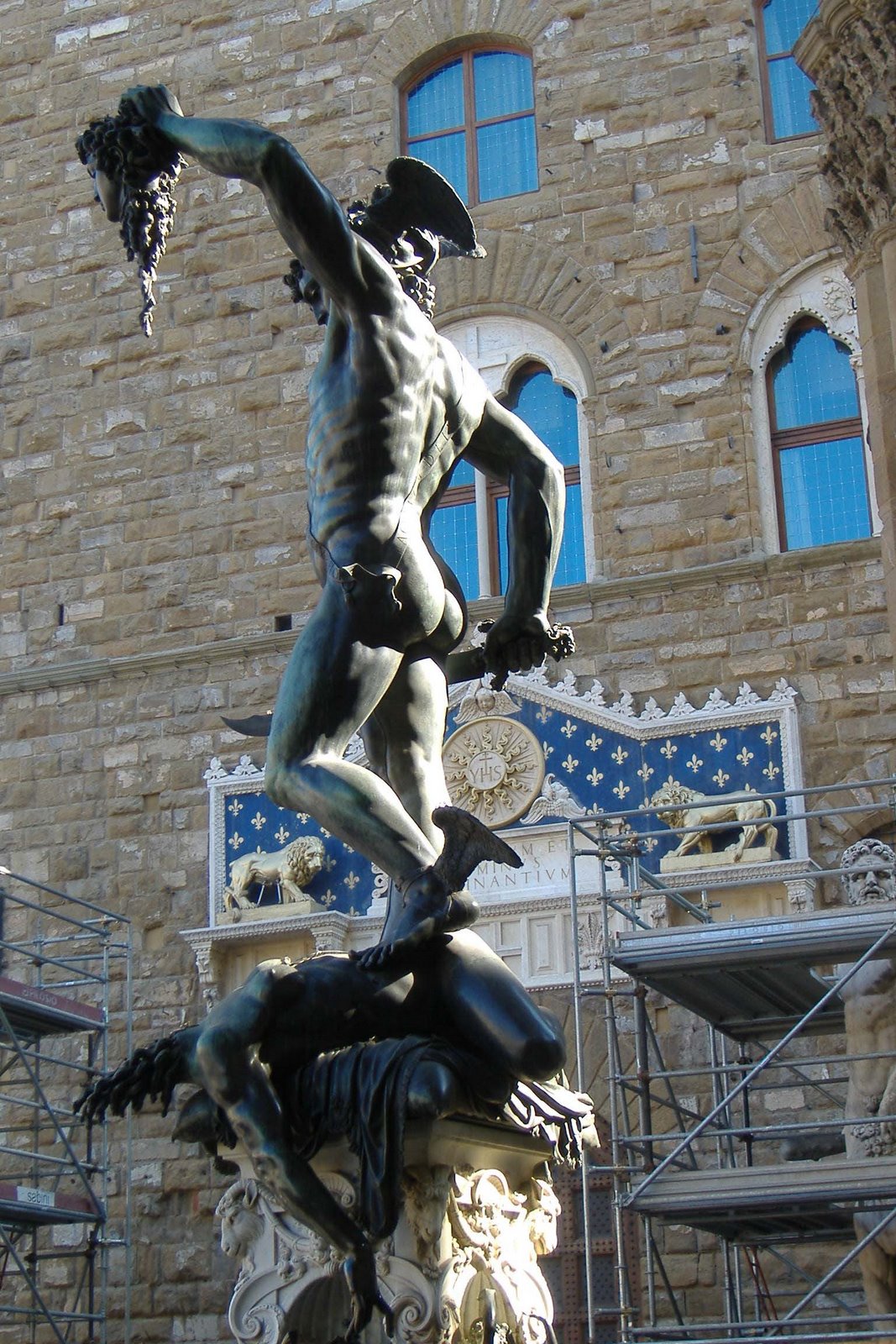 Benvenuto and welcome to this page about Cellini’s masterpiece, the larger-than-life bronze statue of Perseus with the Head of Medusa in the Loggia di Lanzi in Florence.
