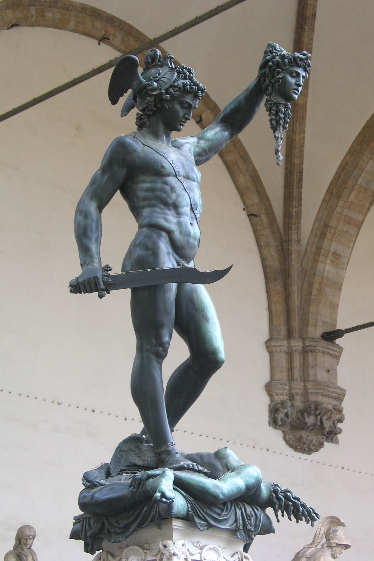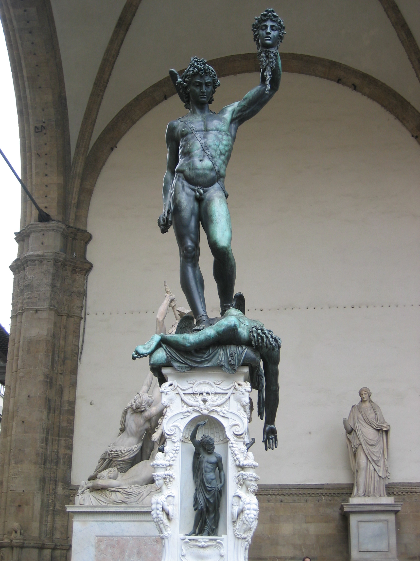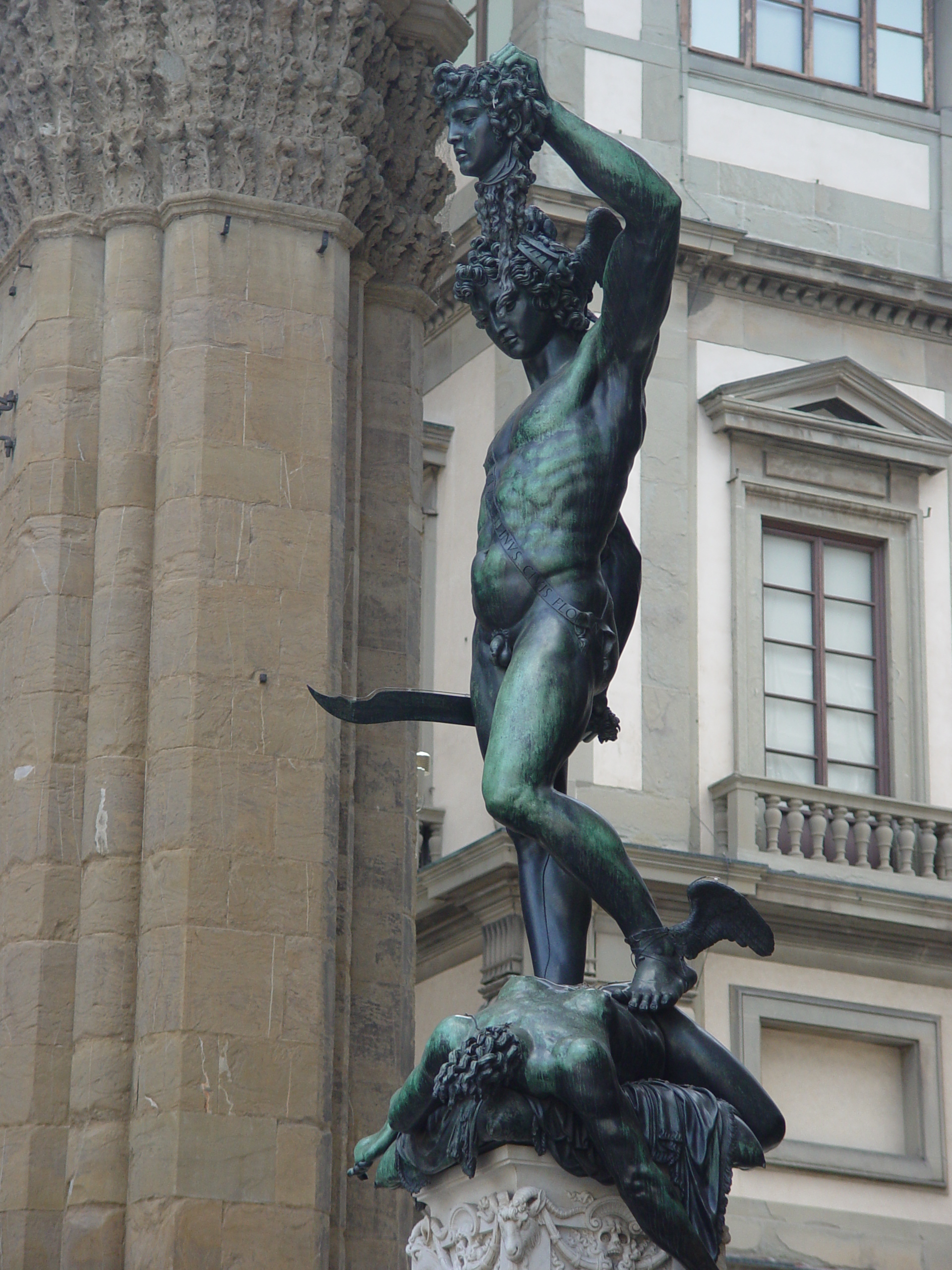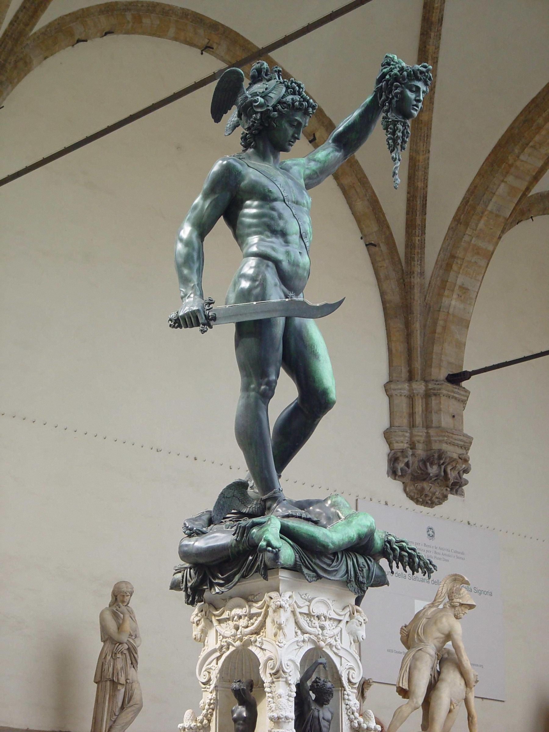 Benvenuto and welcome to this page about Cellini’s masterpiece, the larger-than-life bronze statue of Perseus with the Head of Medusa in the Loggia di Lanzi in Florence.