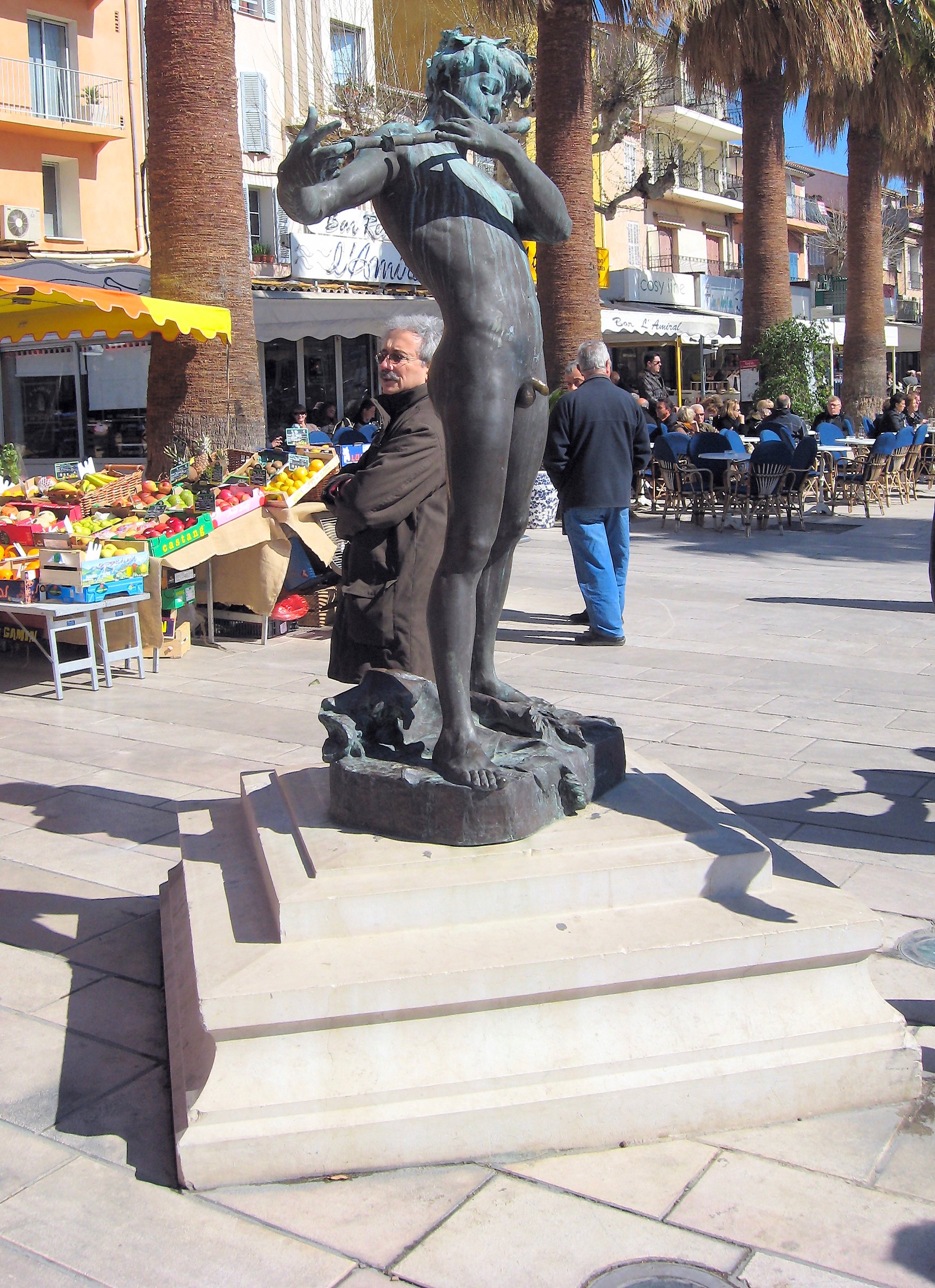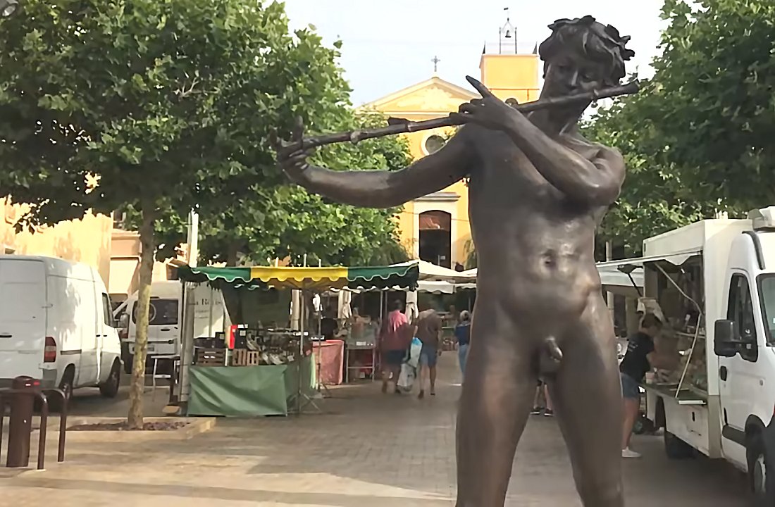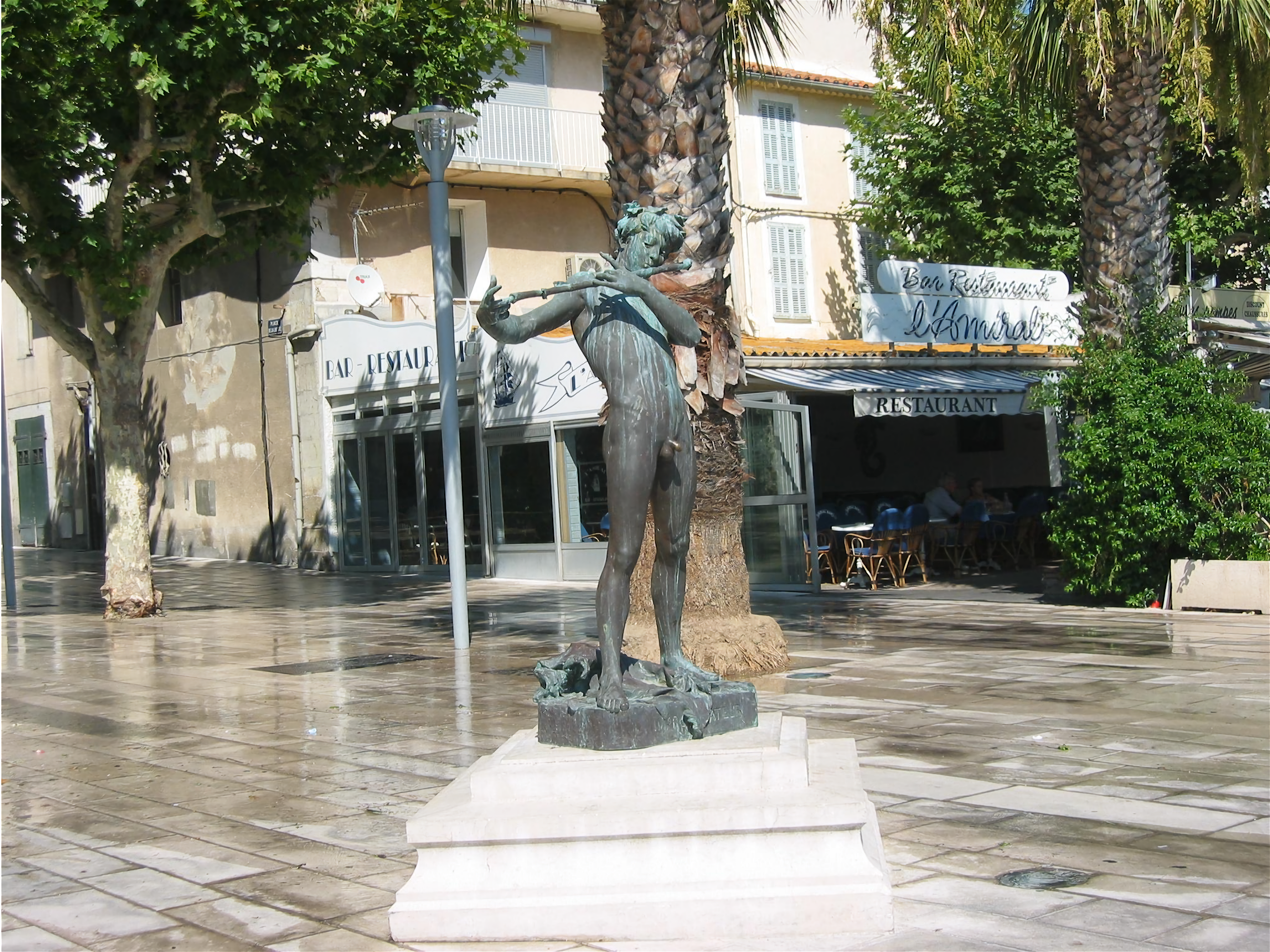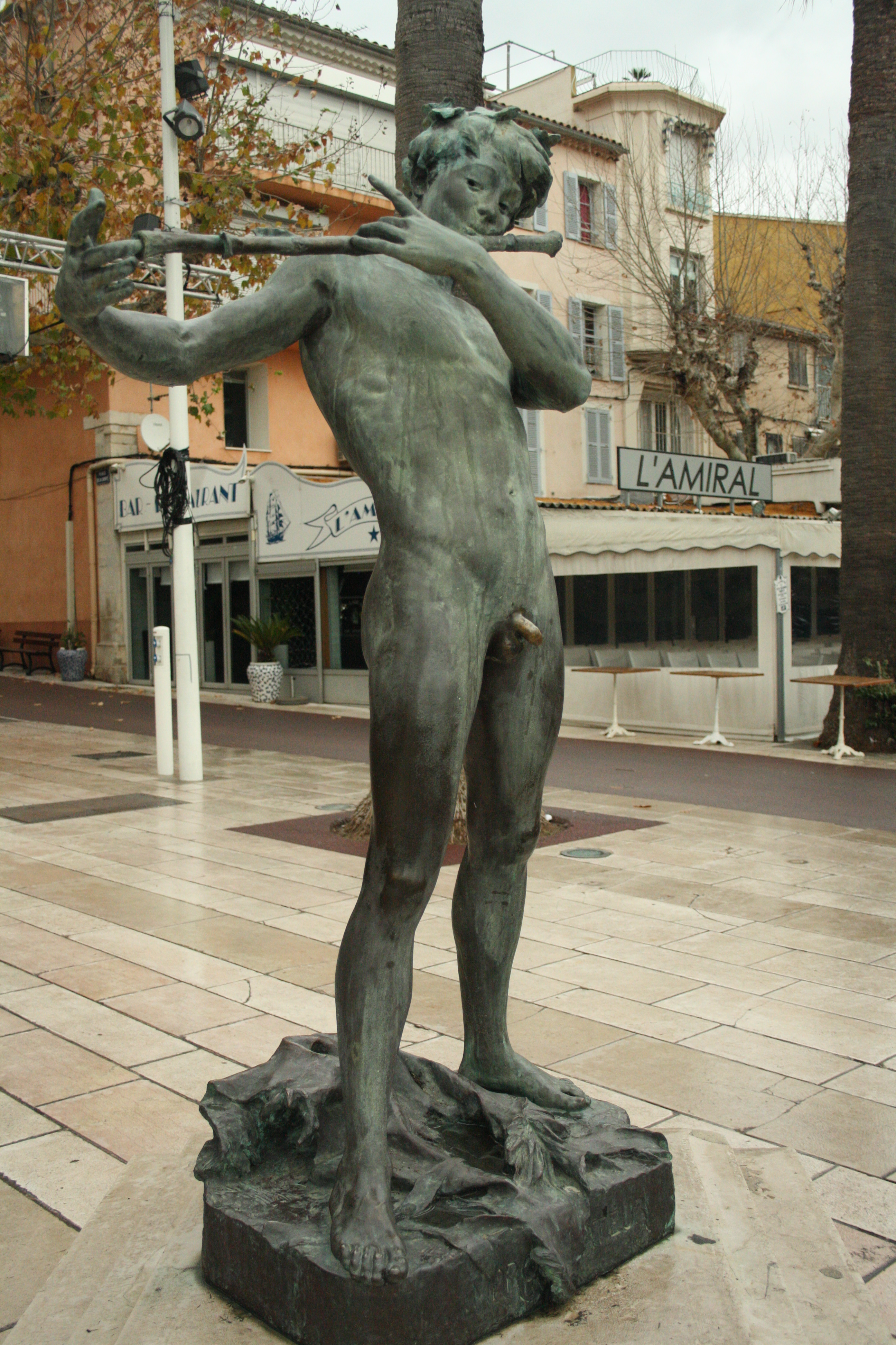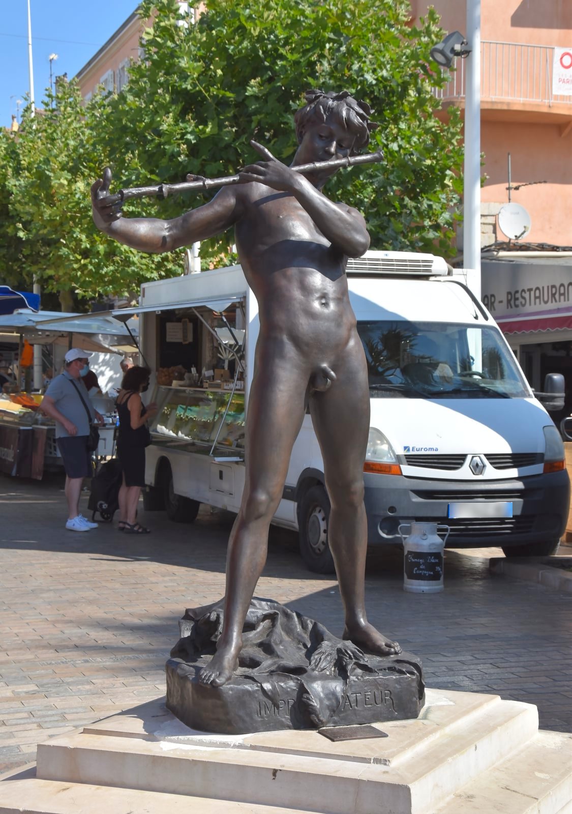 This statue is the inspiration for my stories Being and Be2ng, which contain some mild sexual references. It depicts a youth or faun playing a crude flute that he has improvised from a tree branch. The black and white pictures have been cleaned up from faded antique sepia photos on the net, and depict the original marble and bronze versions. As you can see from the other images, when the statue was reproduced in miniature it suffered the same kind of pointless censorship that many 19th-century statuettes were subjected to, proving that even the French could sometimes be prudish - at least about front views! Full size version, Bandol, France ![]() Between 21 April 1953 and 8 October 2020, a lifesize bronze copy of the statue in its original nude state stood on the promenade at Bandol in southern France, between the marketplace and the seafront, close to the Hotel de Ville and what is now the Bar-Restaurant l’Amiral. It was set on a low-rise pedestal, allowing passers-by to see it almost face to face. Over the course of almost seven decades it acquired some pretty nasty discolouration and was in serious need of cleaning; on the other hand, its penis looked as if it had been polished, possibly by people touching it for luck... or whatever. This led one wag to label his photo “Golden Dick”. How very droll. I’ve scoured just about every public photo gallery on the internet in search of images and these are the best ones I could find. ![]() ![]() ![]() ![]() ![]() ![]() ![]() ![]() ![]() ![]() ![]() ![]() ![]() ![]() ![]() ![]() ![]() ![]() ![]() ![]() ![]() ![]() ![]() Restoration and Reinstallation On 8 October 2020 the statue was removed for much-needed cleaning and restoration, and when it returned on 4 February 2021 it was installed inside the Médiathèque de Bandol, where it will no longer be subject to the ravages of the elements.