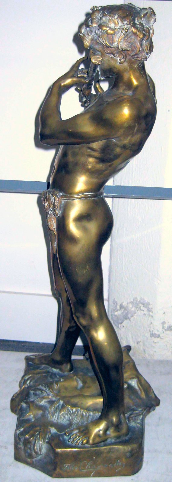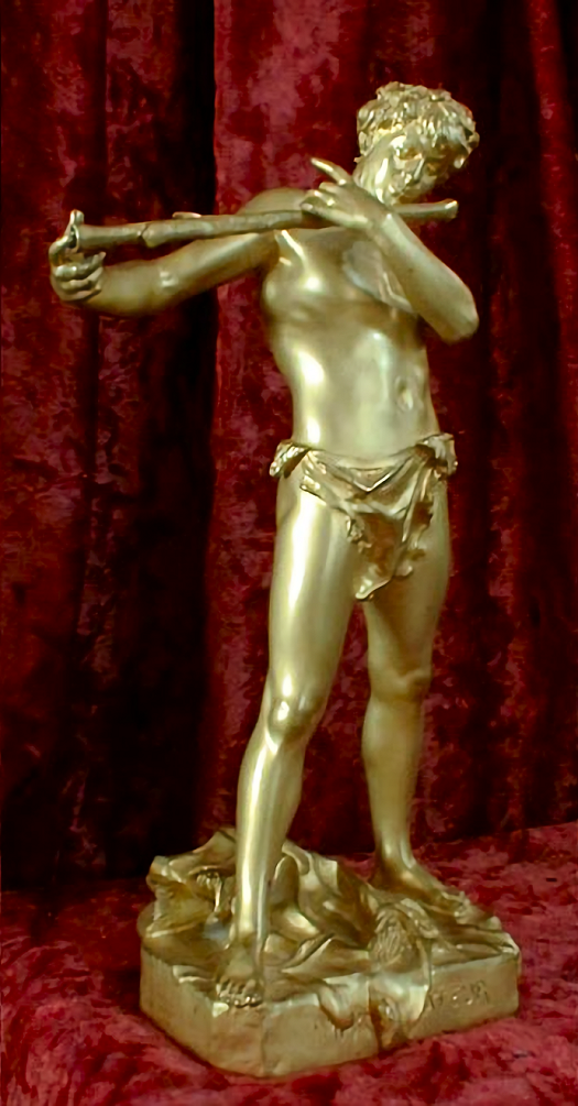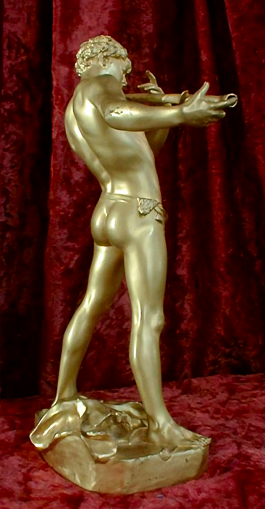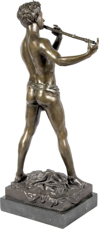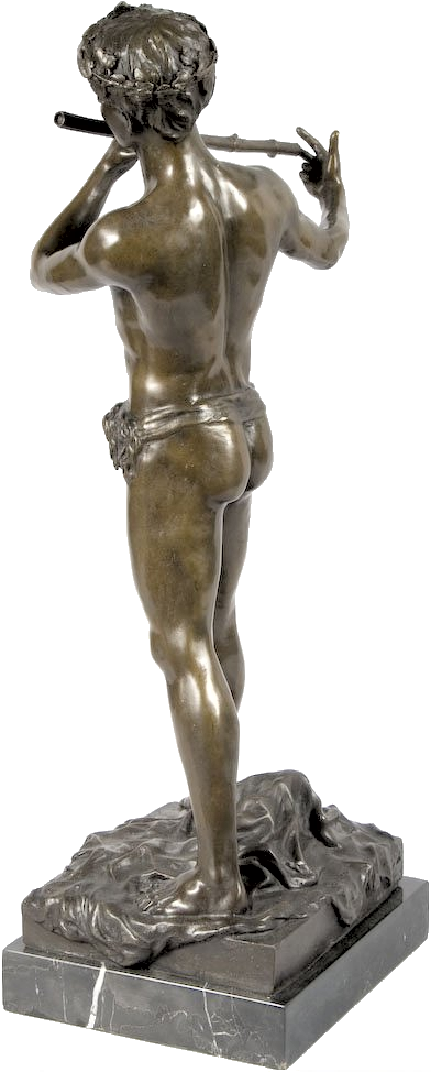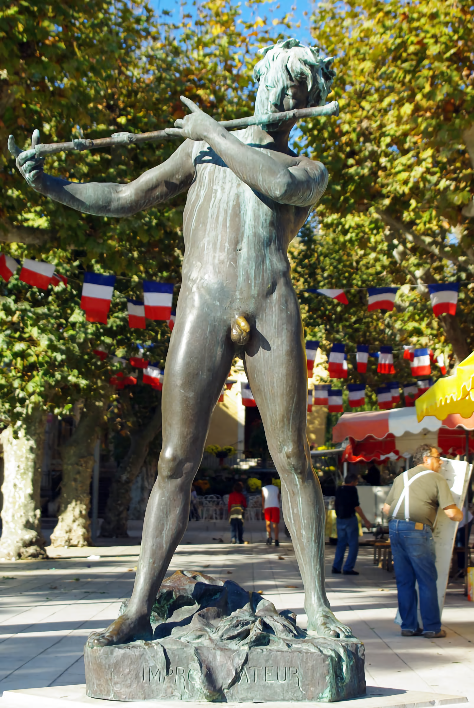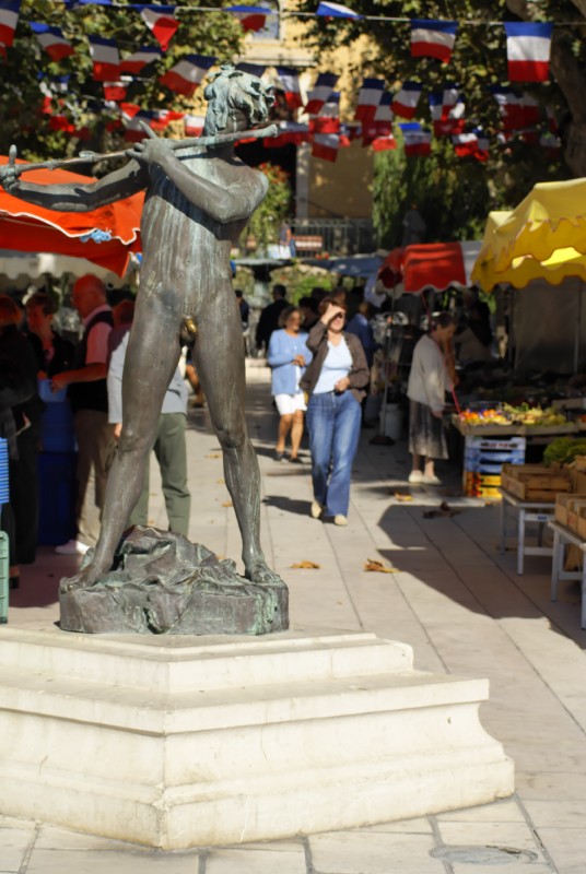 This statue is the inspiration for my stories Being and Be2ng, which contain some mild sexual references. It depicts a youth or faun playing a crude flute that he has improvised from a tree branch. The black and white pictures have been cleaned up from faded antique sepia photos on the net, and depict the original marble and bronze versions. As you can see from the other images, when the statue was reproduced in miniature it suffered the same kind of pointless censorship that many 19th-century statuettes were subjected to, proving that even the French could sometimes be prudish - at least about front views! Full size version, Bandol, France ![]() Between 21 April 1953 and 8 October 2020, a lifesize bronze copy of the statue in its original nude state stood on the promenade at Bandol in southern France, between the marketplace and the seafront, close to the Hotel de Ville and what is now the Bar-Restaurant l’Amiral. It was set on a low-rise pedestal, allowing passers-by to see it almost face to face. Over the course of almost seven decades it acquired some pretty nasty discolouration and was in serious need of cleaning; on the other hand, its penis looked as if it had been polished, possibly by people touching it for luck... or whatever. This led one wag to label his photo “Golden Dick”. How very droll. I’ve scoured just about every public photo gallery on the internet in search of images and these are the best ones I could find. ![]() ![]() ![]() ![]() ![]() ![]() ![]() ![]() ![]() ![]() ![]() ![]() ![]() ![]() ![]() ![]() ![]() ![]() ![]() ![]() ![]() ![]() ![]() Restoration and Reinstallation On 8 October 2020 the statue was removed for much-needed cleaning and restoration, and when it returned on 4 February 2021 it was installed inside the Médiathèque de Bandol, where it will no longer be subject to the ravages of the elements.