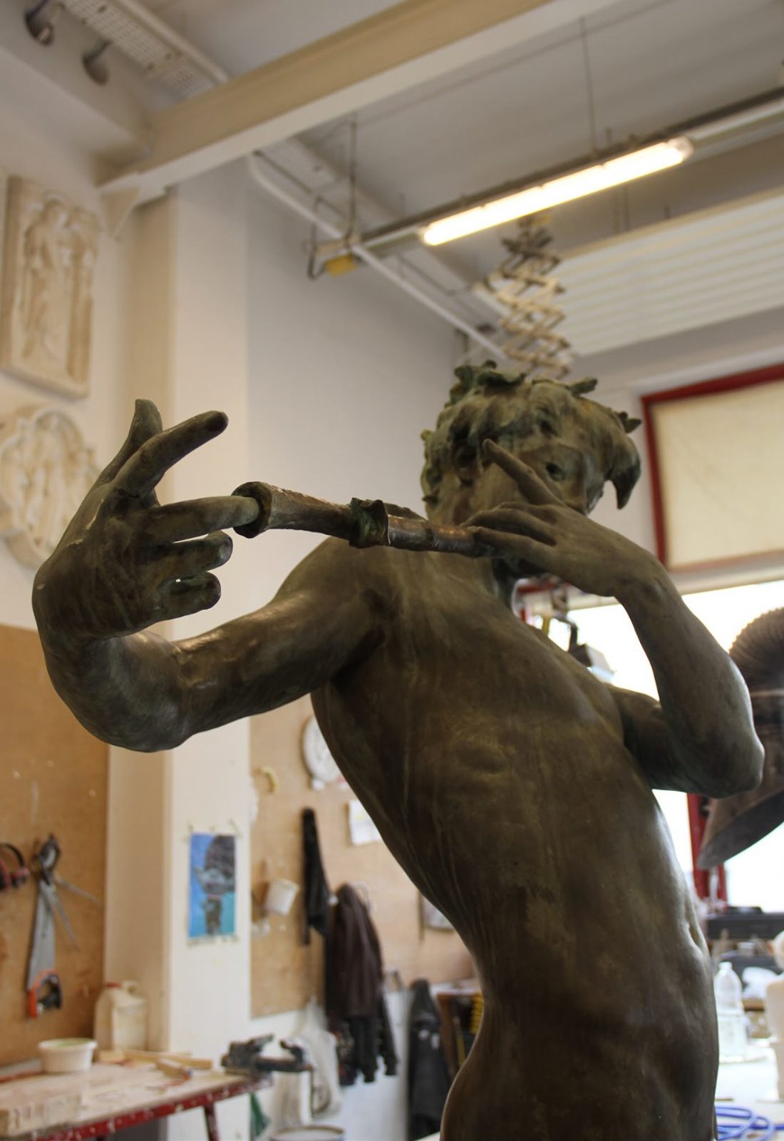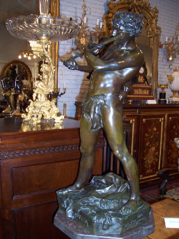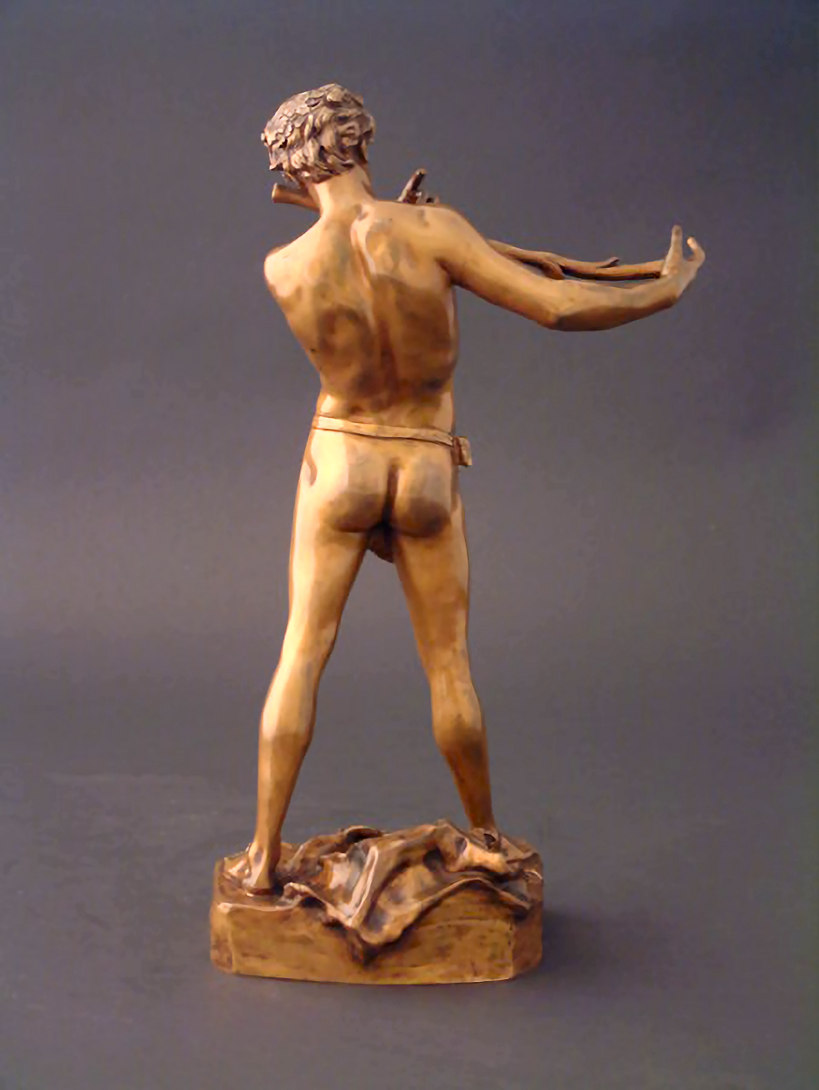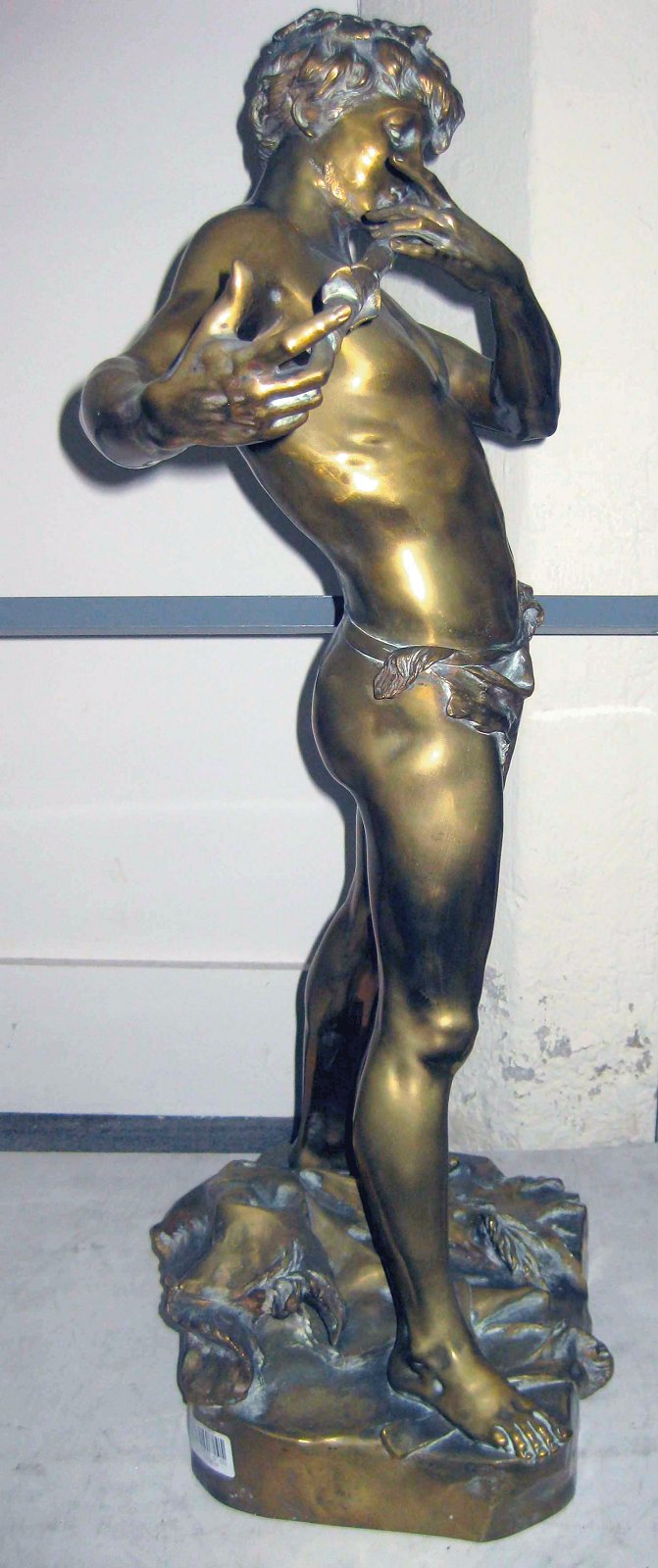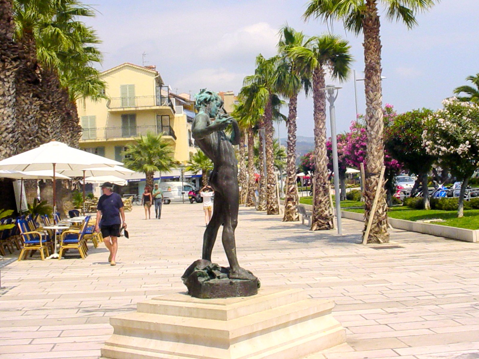 This statue is the inspiration for my stories Being and Be2ng, which contain some mild sexual references. It depicts a youth or faun playing a crude flute that he has improvised from a tree branch. The black and white pictures have been cleaned up from faded antique sepia photos on the net, and depict the original marble and bronze versions. As you can see from the other images, when the statue was reproduced in miniature it suffered the same kind of pointless censorship that many 19th-century statuettes were subjected to, proving that even the French could sometimes be prudish - at least about front views! Full size version, Bandol, France ![]() Between 21 April 1953 and 8 October 2020, a lifesize bronze copy of the statue in its original nude state stood on the promenade at Bandol in southern France, between the marketplace and the seafront, close to the Hotel de Ville and what is now the Bar-Restaurant l’Amiral. It was set on a low-rise pedestal, allowing passers-by to see it almost face to face. Over the course of almost seven decades it acquired some pretty nasty discolouration and was in serious need of cleaning; on the other hand, its penis looked as if it had been polished, possibly by people touching it for luck... or whatever. This led one wag to label his photo “Golden Dick”. How very droll. I’ve scoured just about every public photo gallery on the internet in search of images and these are the best ones I could find. ![]() ![]() ![]() ![]() ![]() ![]() ![]() ![]() ![]() ![]() ![]() ![]() ![]() ![]() ![]() ![]() ![]() ![]() ![]() ![]() ![]() ![]() ![]() Restoration and Reinstallation On 8 October 2020 the statue was removed for much-needed cleaning and restoration, and when it returned on 4 February 2021 it was installed inside the Médiathèque de Bandol, where it will no longer be subject to the ravages of the elements.