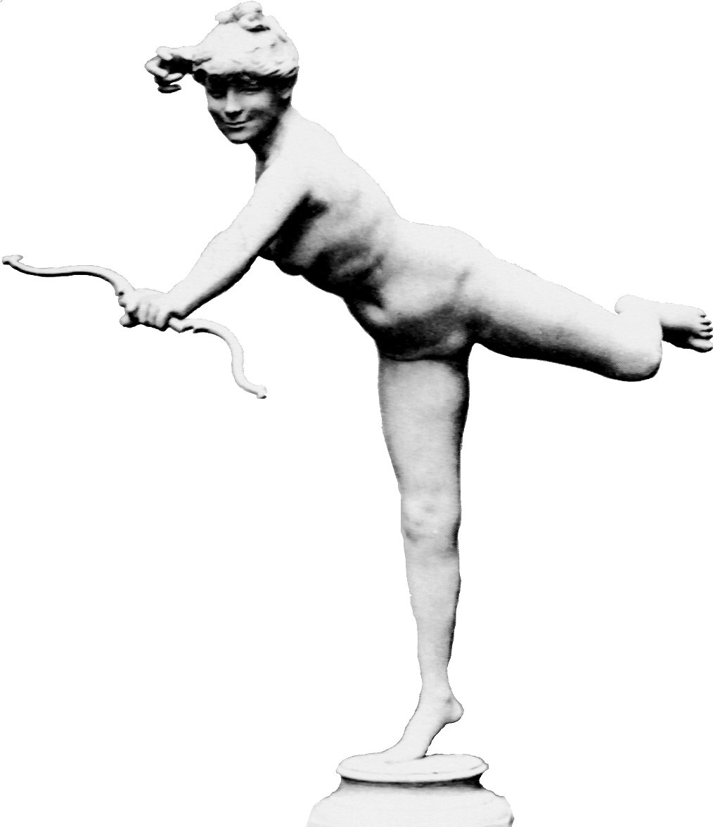 (1) Diana: full-size bronze outdoors, missing bow | (2) Diana: statuette (3) Huntress [another version of Diana?]
