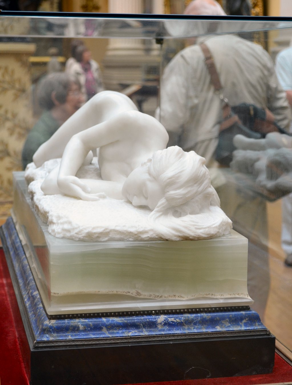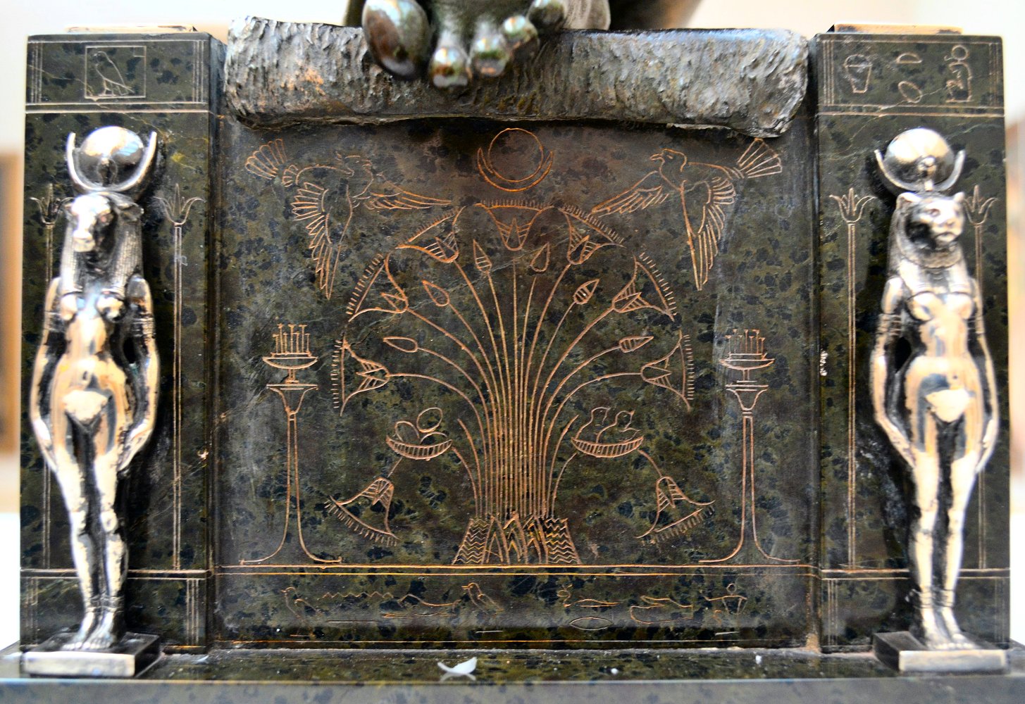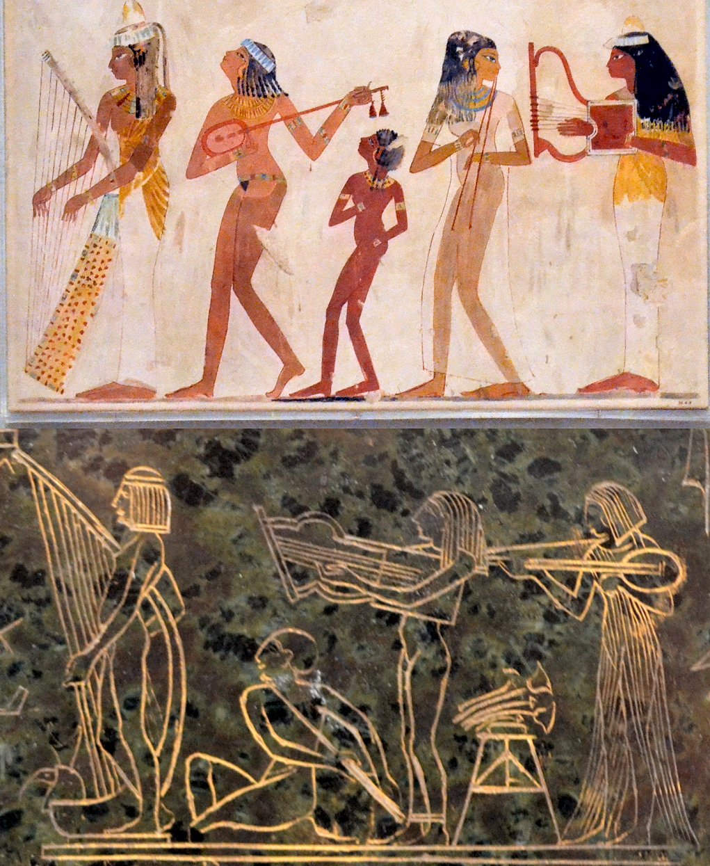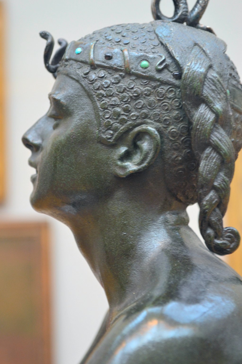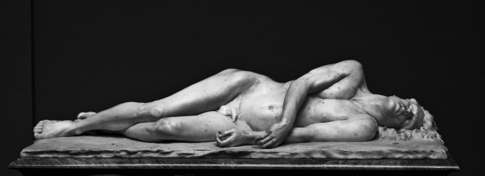 ![]() ![]() ![]() ![]() ![]() ![]() ![]() ![]() This 1893 companion piece to The Singer doesn’t seem to appear in many vintage art books, at least not the ones where I found the older photos of The Singer. Unlike The Singer, which was part of the original Tate collection, Applause used to be privately-owned and was hardly ever displayed. She was later acquired by the Tate and, her appearance there in the summer of 2010 was a rare opportunity for me to photograph her. Admittedly these images suffer from the same problems as my other Tate pictures, but apart from one small image on the official Tate website and a few more on Flickr, these were for a time be the only photos you could find of her anywhere. Finally in December 2012 she went back on permanent display at the Tate’s BP Walk Through British Art galleries - though frustratingly, The Singer has not been put back on display with her. One of the following shots (see if you can spot which one) was taken while the room was being prepared, before she was put back in her glass case. As for the rest, by using a wide angle lens, and wearing dark clothing and gloves, I was able to avoid some of the reflection problems I’d previously experienced with the glass, although in some views the wide angle makes her hands look freakishly big. ![]() ![]() ![]() ![]() ![]() ![]() ![]() ![]() ![]() ![]() ![]() ![]() ![]() ![]() ![]() ![]() Some rare old engravings show the statue on a tall pedestal, just like her ‘sister’. It would be fascinating to see the two statues displayed that way, but I guess it wasn’t practical, even assuming the pedestals still exist. As you can see, this girl also has a headdress and coronet, this time decorated with cobras (representing the Nile, apparently), and also sits on a sculpted pedestal. Although not as finely-detailed as The Singer, there’s still a lot to enjoy about this piece. ![]() This is a contrast-enhanced photo of the rear of the pedestal, showing two statuettes of Egyptian goddesses, and a hidden image that hopefully shouldn’t be too hard to make out... ![]() Amongst the Egyptian-style engravings on the sides of the pedestal (the left side is a mirror-image of the right) are two figures, one of which looks suspiciously similar to Applause herself, and the other of which is indubitably The Singer. The engraved Singer seems to have been promoted to lead singer in the band. Good for her. ![]() ![]() ![]() ![]() Finally, here’s a comparison between a real panel from an Ancient Egyptian tomb painting, now in the Metropolitan Museum of Art, New York, and the top row of musicians on the base of Applause. Note the similarities between the clothing (what there is of it!), decoration, headdresses and musical instruments, demonstrating that Ford had done some research on his subject. ![]() Dating from roughly the same period, French sculptress Jeanne Itasse’s statue Egyptian Harpist uses similar subject matter to Ford’s Egyptian girls. Unfortunately I’ve only been able to find one vintage photo of it, and it’s possible that it may not have survived the upheavals of the 20th century, which would be a shame. ![]() Meanwhile, rounding off this look at the two girls, here’s a comparison of their faces in profile. You’ll notice that in both cases the camera chose to focus on the foreground, so their headpieces came out sharper than their actual faces. ![]() Folly (1886) Tate Britain Gallery, London, August-September 2010.