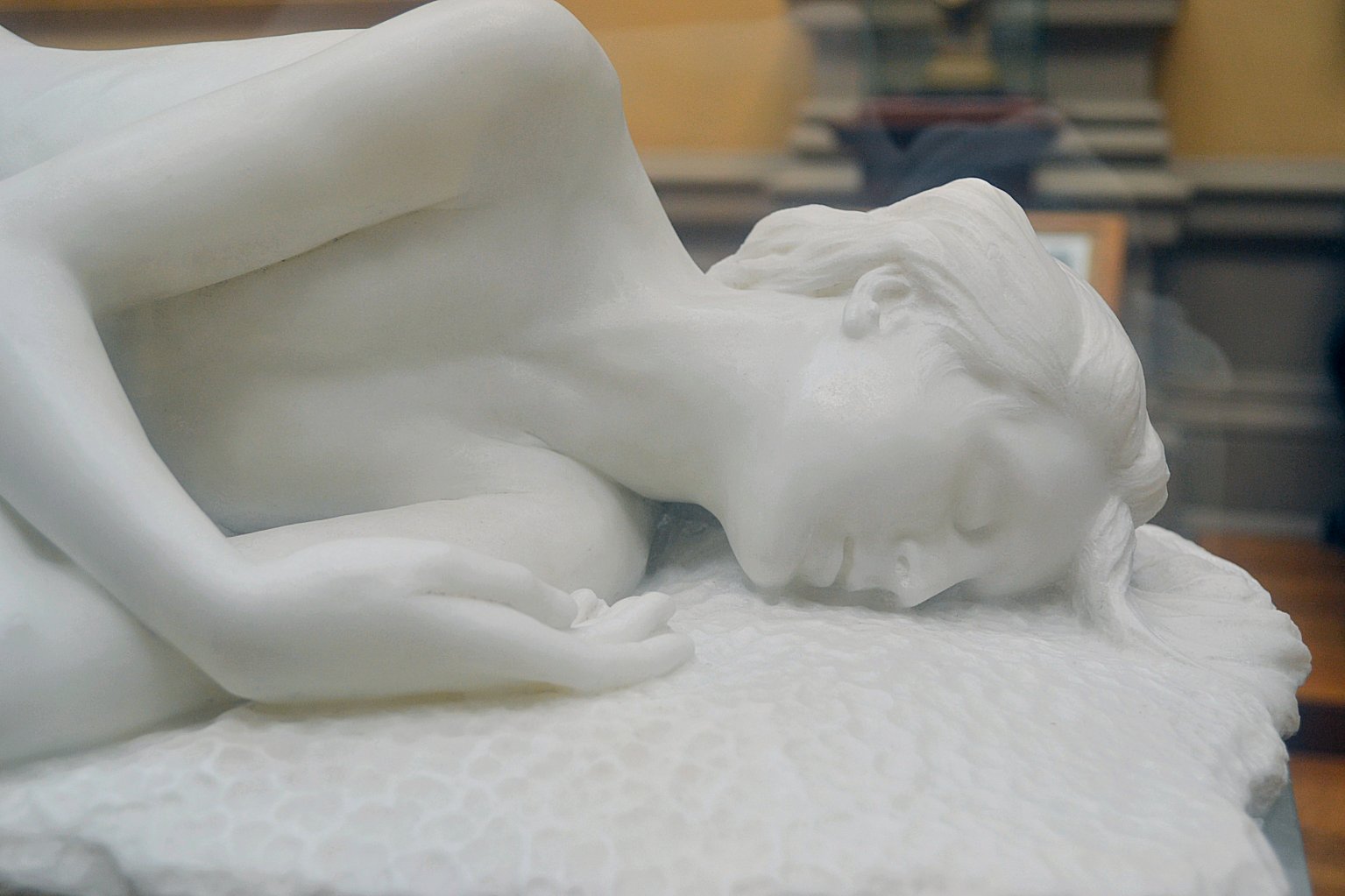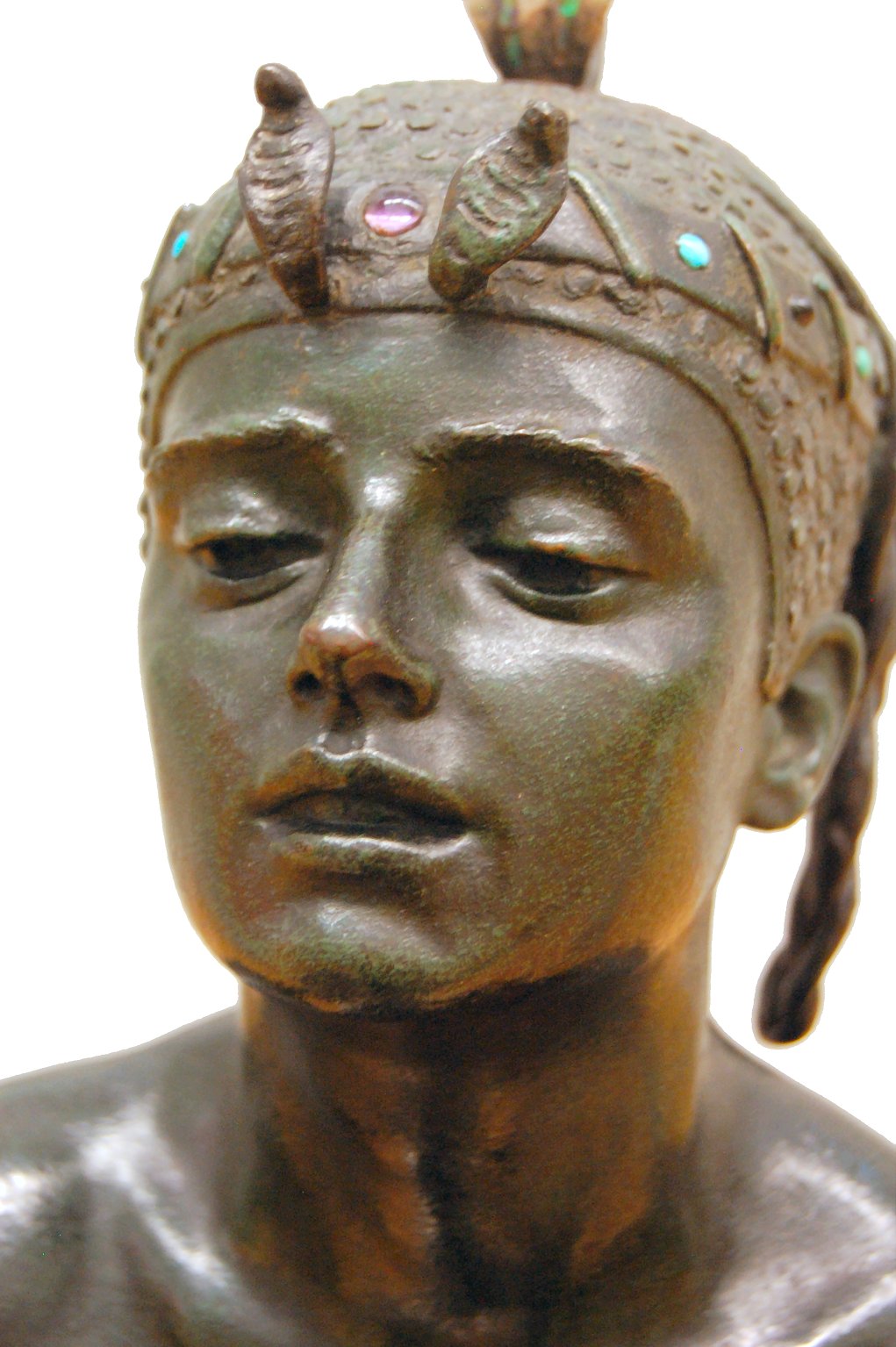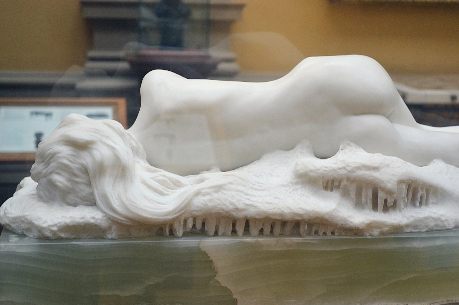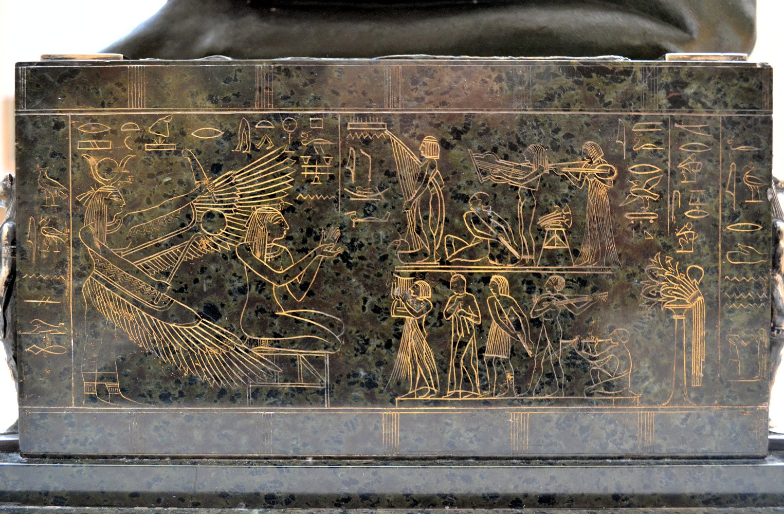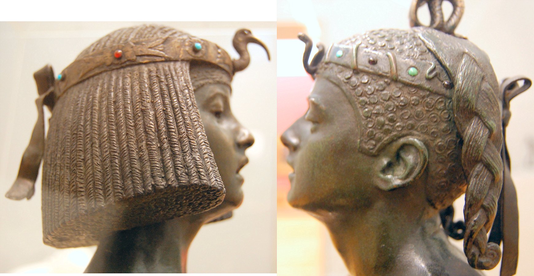 ![]() ![]() ![]() ![]() ![]() ![]() ![]() ![]() This 1893 companion piece to The Singer doesn’t seem to appear in many vintage art books, at least not the ones where I found the older photos of The Singer. Unlike The Singer, which was part of the original Tate collection, Applause used to be privately-owned and was hardly ever displayed. She was later acquired by the Tate and, her appearance there in the summer of 2010 was a rare opportunity for me to photograph her. Admittedly these images suffer from the same problems as my other Tate pictures, but apart from one small image on the official Tate website and a few more on Flickr, these were for a time be the only photos you could find of her anywhere. Finally in December 2012 she went back on permanent display at the Tate’s BP Walk Through British Art galleries - though frustratingly, The Singer has not been put back on display with her. One of the following shots (see if you can spot which one) was taken while the room was being prepared, before she was put back in her glass case. As for the rest, by using a wide angle lens, and wearing dark clothing and gloves, I was able to avoid some of the reflection problems I’d previously experienced with the glass, although in some views the wide angle makes her hands look freakishly big. ![]() ![]() ![]() ![]() ![]() ![]() ![]() ![]() ![]() ![]() ![]() ![]() ![]() ![]() ![]() ![]() Some rare old engravings show the statue on a tall pedestal, just like her ‘sister’. It would be fascinating to see the two statues displayed that way, but I guess it wasn’t practical, even assuming the pedestals still exist. As you can see, this girl also has a headdress and coronet, this time decorated with cobras (representing the Nile, apparently), and also sits on a sculpted pedestal. Although not as finely-detailed as The Singer, there’s still a lot to enjoy about this piece. ![]() This is a contrast-enhanced photo of the rear of the pedestal, showing two statuettes of Egyptian goddesses, and a hidden image that hopefully shouldn’t be too hard to make out... ![]() Amongst the Egyptian-style engravings on the sides of the pedestal (the left side is a mirror-image of the right) are two figures, one of which looks suspiciously similar to Applause herself, and the other of which is indubitably The Singer. The engraved Singer seems to have been promoted to lead singer in the band. Good for her. ![]() ![]() ![]() ![]() Finally, here’s a comparison between a real panel from an Ancient Egyptian tomb painting, now in the Metropolitan Museum of Art, New York, and the top row of musicians on the base of Applause. Note the similarities between the clothing (what there is of it!), decoration, headdresses and musical instruments, demonstrating that Ford had done some research on his subject. ![]() Dating from roughly the same period, French sculptress Jeanne Itasse’s statue Egyptian Harpist uses similar subject matter to Ford’s Egyptian girls. Unfortunately I’ve only been able to find one vintage photo of it, and it’s possible that it may not have survived the upheavals of the 20th century, which would be a shame. ![]() Meanwhile, rounding off this look at the two girls, here’s a comparison of their faces in profile. You’ll notice that in both cases the camera chose to focus on the foreground, so their headpieces came out sharper than their actual faces. ![]() Folly (1886) Tate Britain Gallery, London, August-September 2010.