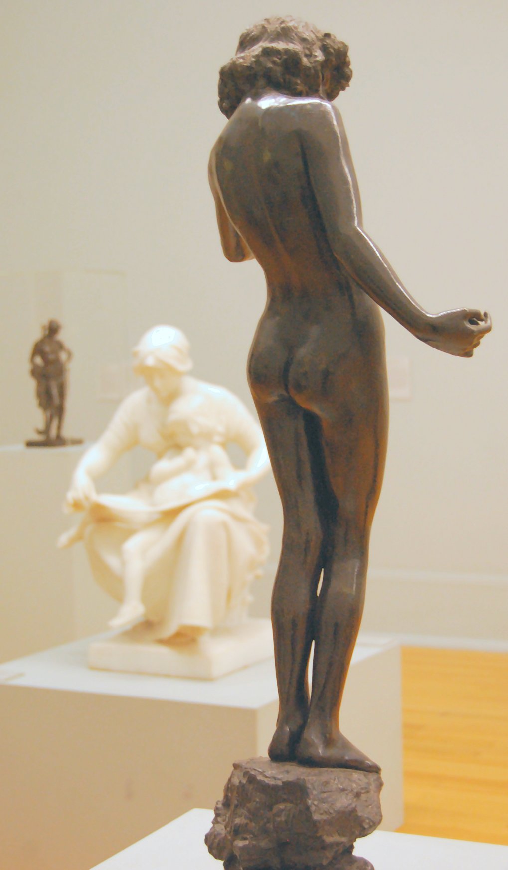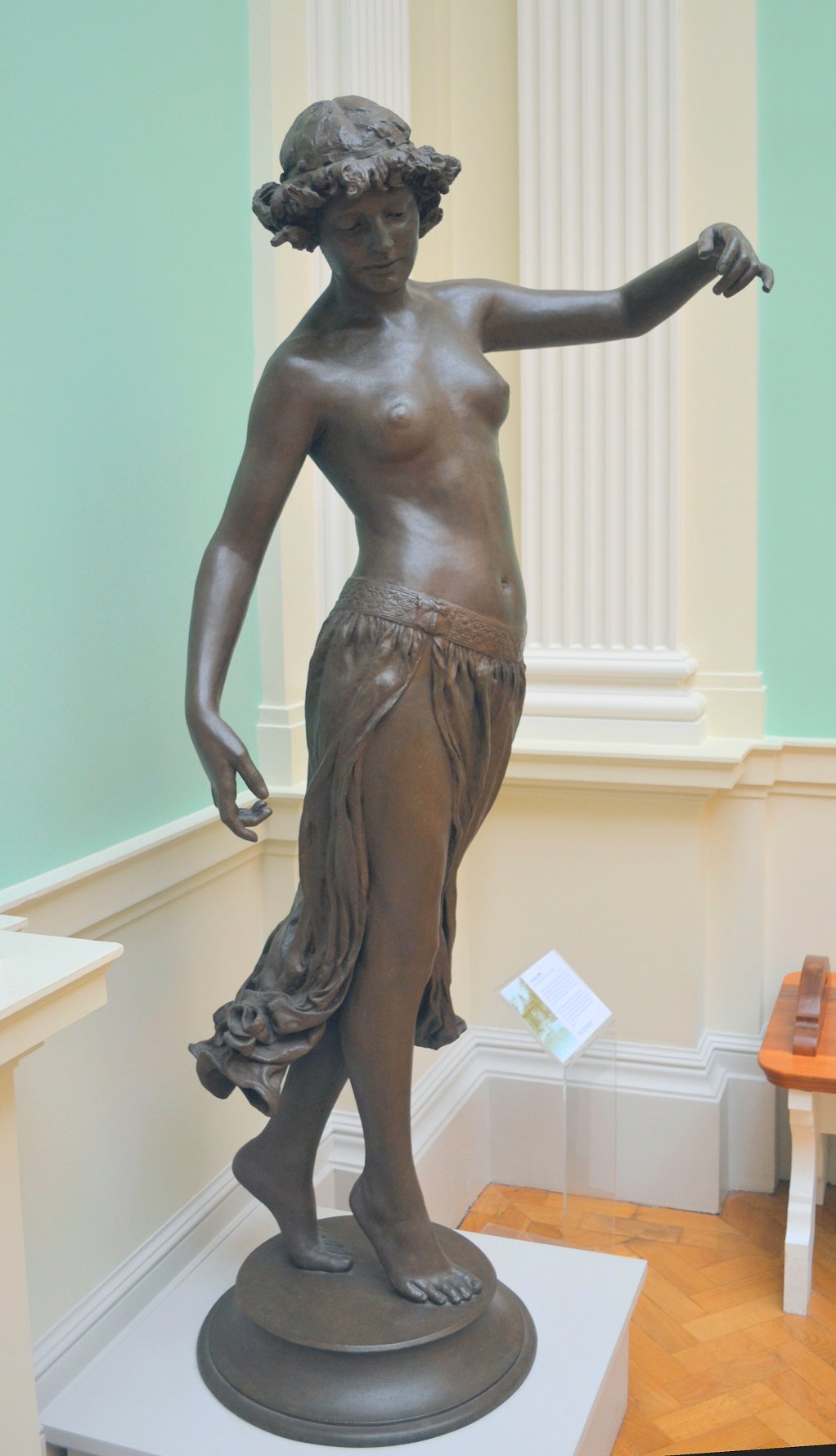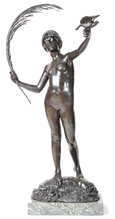 ![]() ![]() ![]() ![]() ![]() ![]() ![]() ![]() ![]() Topless Female Statues Remastered versions of old book engravings plus various others ![]() ![]() ![]() ![]() ![]() Knowledge (c. 1898) (left) depicts a girl reading from a scroll on her lap. Several other sculptors used scrolls to symbolise knowledge: Albert Toft’s statue Education (picture not yet available) and Alfred Gilbert’s Mother Teaching Child (1881) (also shown at the Tate’s 2010 New Sculpture exhibition) (Flickr images) both depict parents teaching their children from scrolls, while elsewhere in this very Gallery you can see French artist Charles Jean Marie Degeorge’s statue of the young Aristotle looking very I have no idea why the original versions of Music (second from left) and Dance (third from left) (both 1890) are wearing birds on their heads. I seem to recall reading that the originals had gone to India not long after they were completed. There were a number of bronze reproductions, which perhaps wisely discarded the bird hats. (Second right: bronze statuette of Dance; right: life-size bronze version of Dance in the Lady Lever Art Gallery, Port Sunlight, Merseyside, UK, taken by mrmaclear on Flickr.) Another bronze copy of Dance found its way to the US via Germany. PBS’s Antiques Roadshow caught up with it in Wichita, Kansas in July 2008 and gave it an insurance value of US$20,000. (There was a link to this, but it appears to have been moved or deleted.). ![]() ![]() ![]() ![]() Dance: above, four views of a statuette (not the Wichita version). Below, my own photos of the lifesize version, next to the door of the Lady Lever Art Gallery.