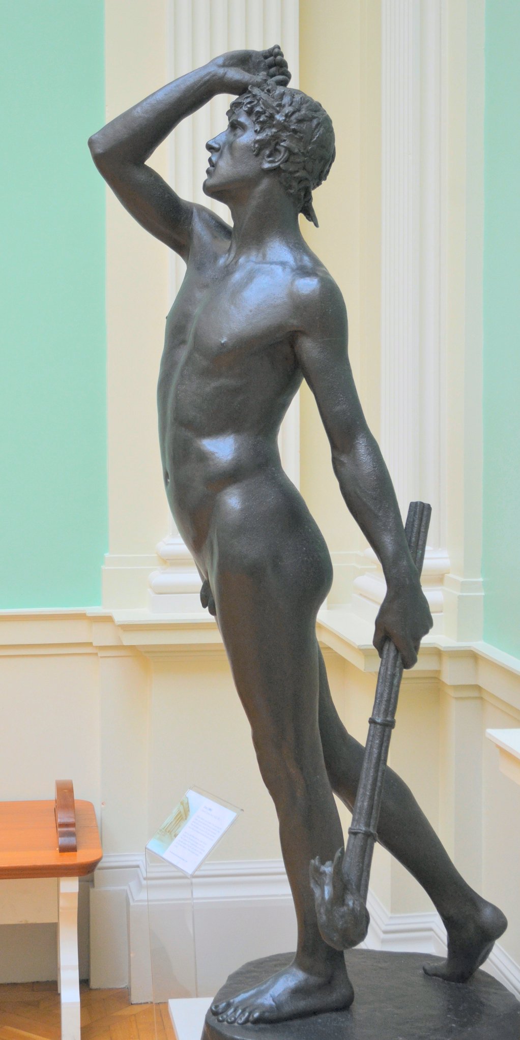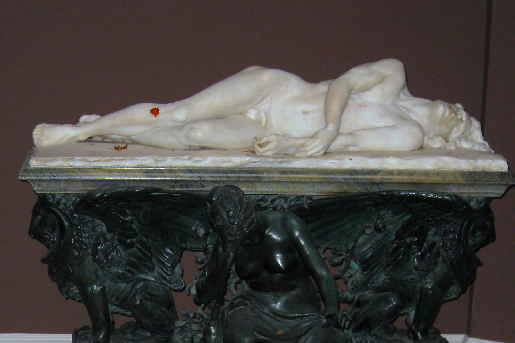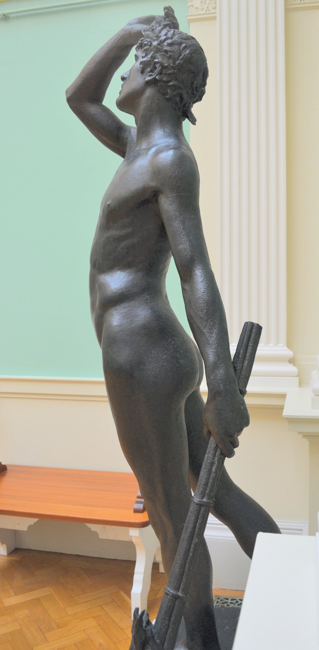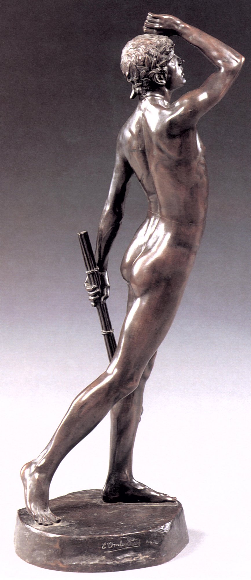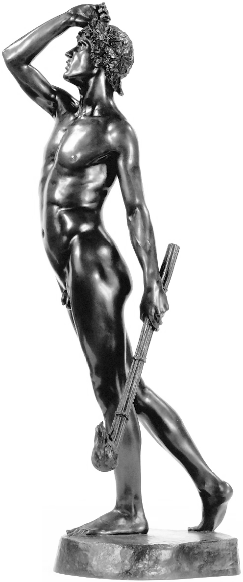 ![]() ![]() ![]() ![]() ![]() ![]() ![]() ![]() ![]() ![]() ![]() One of Ford’s last works, exhibited posthumously, now in a glass case at the Lady Lever Art Gallery, depicts a nude girl lying asleep, dying or dead in the eponymous snow. The statue has a splendid base incorporating veined blue marble, but the base may be the posthumous artist’s work. Linos (1884) ![]() ![]() ![]() ![]() ![]() Five views of Linos (or Linus...no relation to the Peanuts character!) - three side views of bronze reproductions, including one line engraving from an art book, and a front view with fig leaf added. The artist’s signature can be seen on the base in the big version of the left-hand image. The inscription on the front of the base in the third from left image reads ![]() ![]() ![]() ![]() Four views of another statuette version. Once again Ford’s signature can be seen on the base in the right-side view. Linos seems to have been a Greek god of melancholy. His expression, gesture and lowered torch seem intended to convey his feeling of dismay, although with a body like that you can’t help wondering what he’s got to be so miserable about. ![]() ![]() ![]() ![]() ![]() ![]() Some more views of a statuette version, this time at the Marshall M. Fredericks Sculpture Museum, Saginaw, Michigan. On this version the artist’s signature is on the top of the base in the right-side view. Below are my photos of the full-size version at the Lady Lever Art Gallery, on the opposite side of the entrance from Dance.