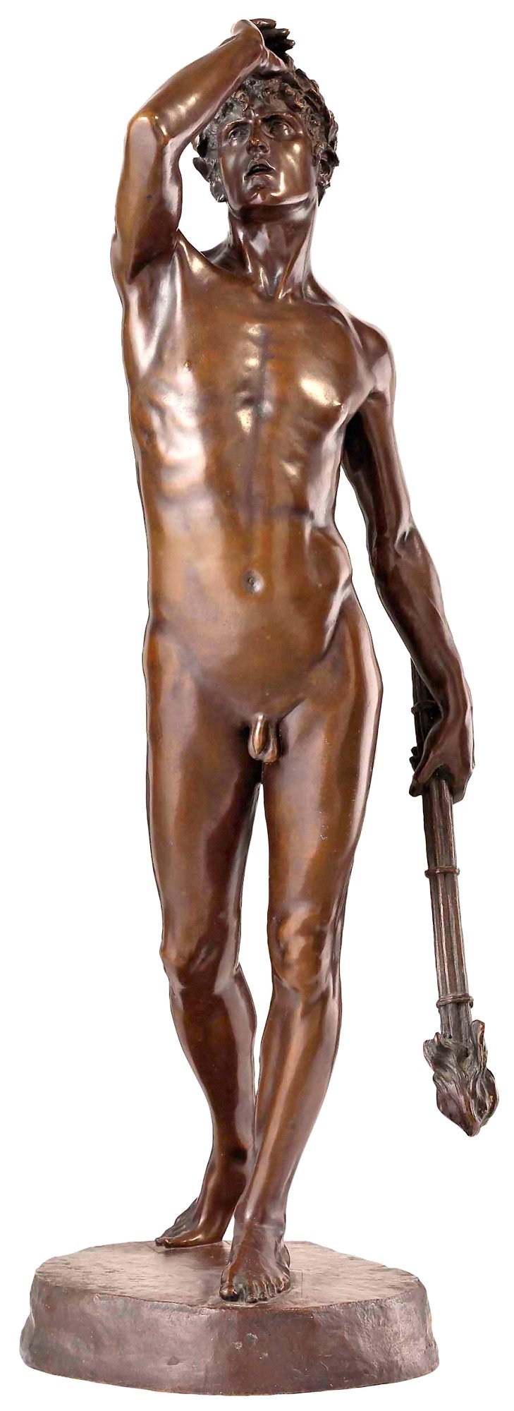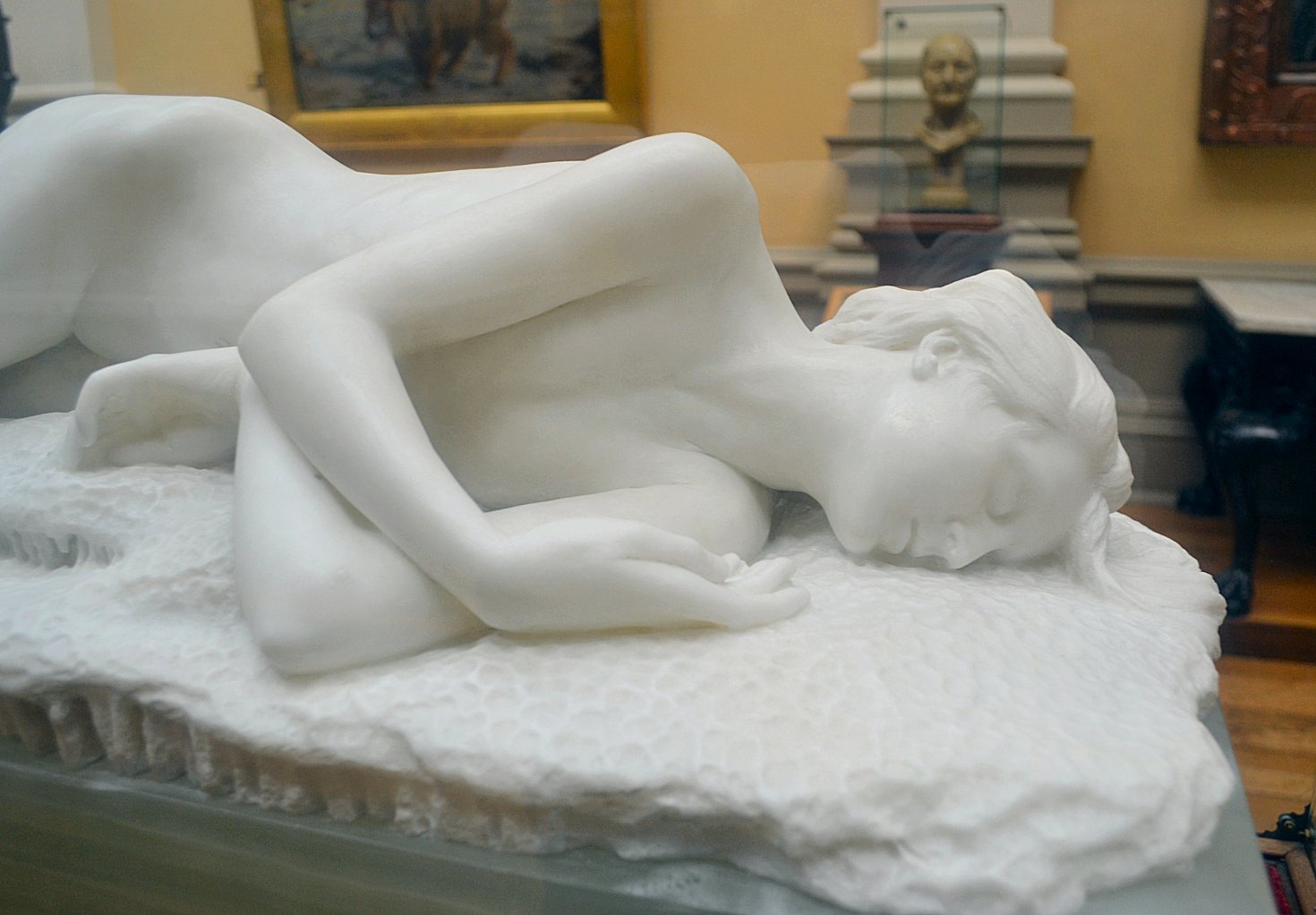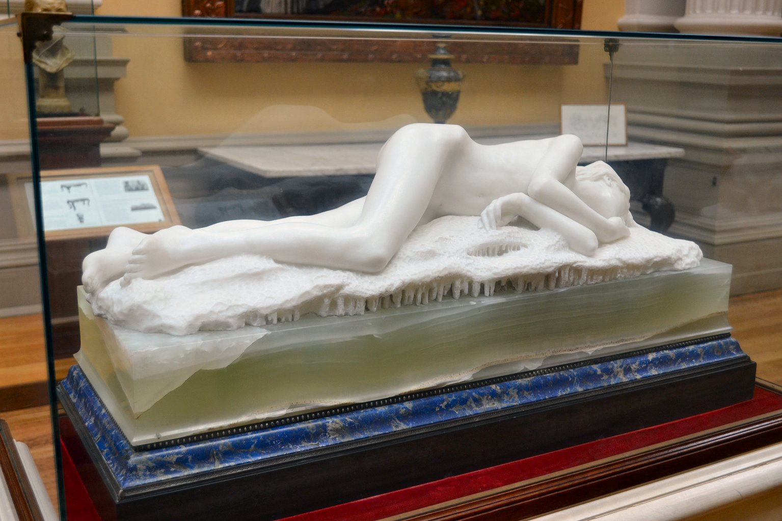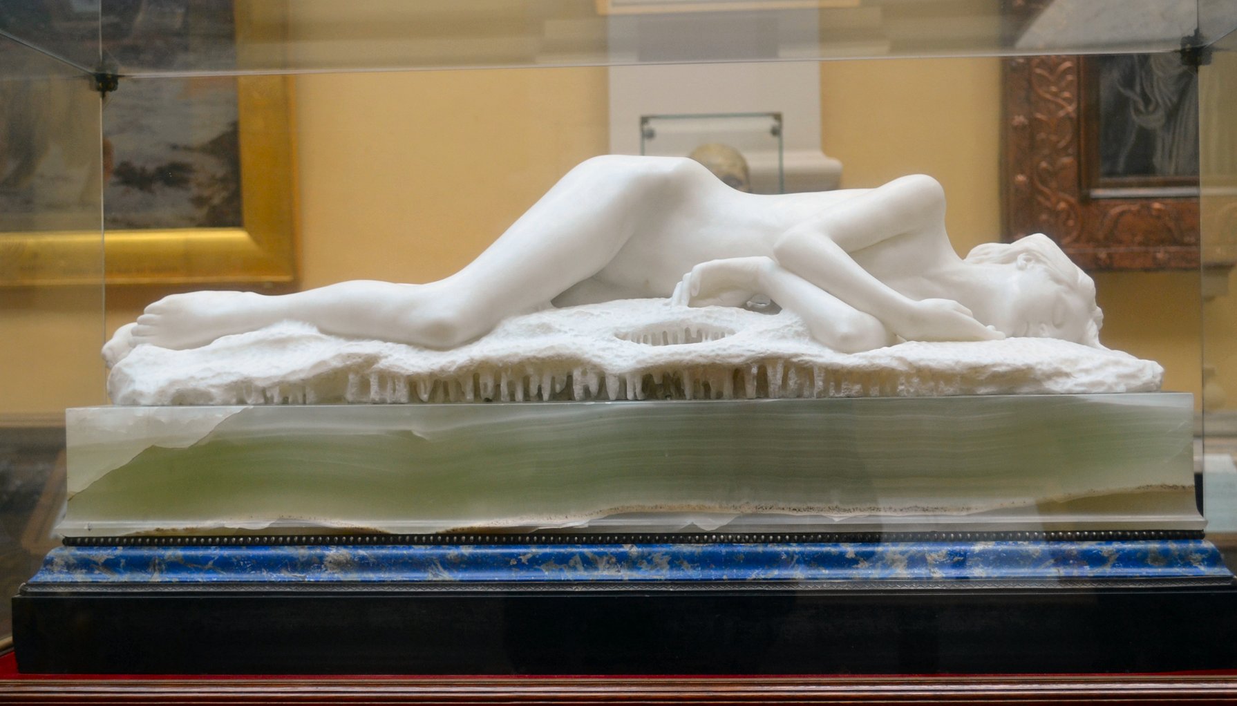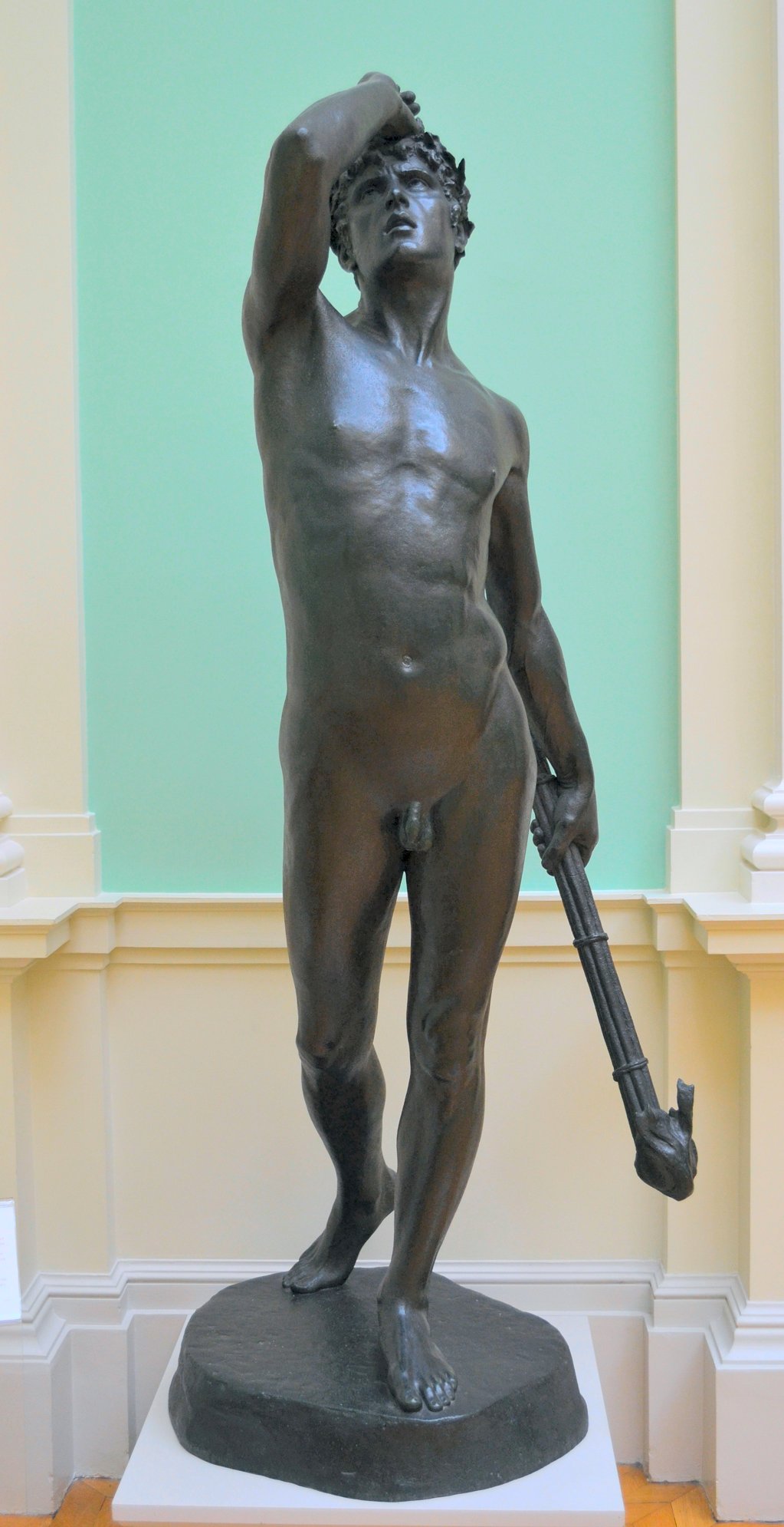 ![]() ![]() ![]() ![]() ![]() ![]() ![]() ![]() ![]() ![]() ![]() One of Ford’s last works, exhibited posthumously, now in a glass case at the Lady Lever Art Gallery, depicts a nude girl lying asleep, dying or dead in the eponymous snow. The statue has a splendid base incorporating veined blue marble, but the base may be the posthumous artist’s work. Linos (1884) ![]() ![]() ![]() ![]() ![]() Five views of Linos (or Linus...no relation to the Peanuts character!) - three side views of bronze reproductions, including one line engraving from an art book, and a front view with fig leaf added. The artist’s signature can be seen on the base in the big version of the left-hand image. The inscription on the front of the base in the third from left image reads ![]() ![]() ![]() ![]() Four views of another statuette version. Once again Ford’s signature can be seen on the base in the right-side view. Linos seems to have been a Greek god of melancholy. His expression, gesture and lowered torch seem intended to convey his feeling of dismay, although with a body like that you can’t help wondering what he’s got to be so miserable about. ![]() ![]() ![]() ![]() ![]() ![]() Some more views of a statuette version, this time at the Marshall M. Fredericks Sculpture Museum, Saginaw, Michigan. On this version the artist’s signature is on the top of the base in the right-side view. Below are my photos of the full-size version at the Lady Lever Art Gallery, on the opposite side of the entrance from Dance.
