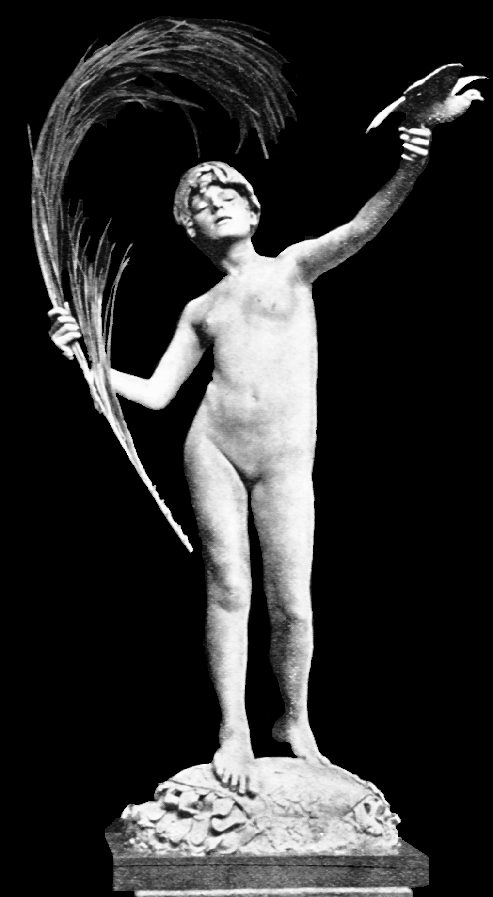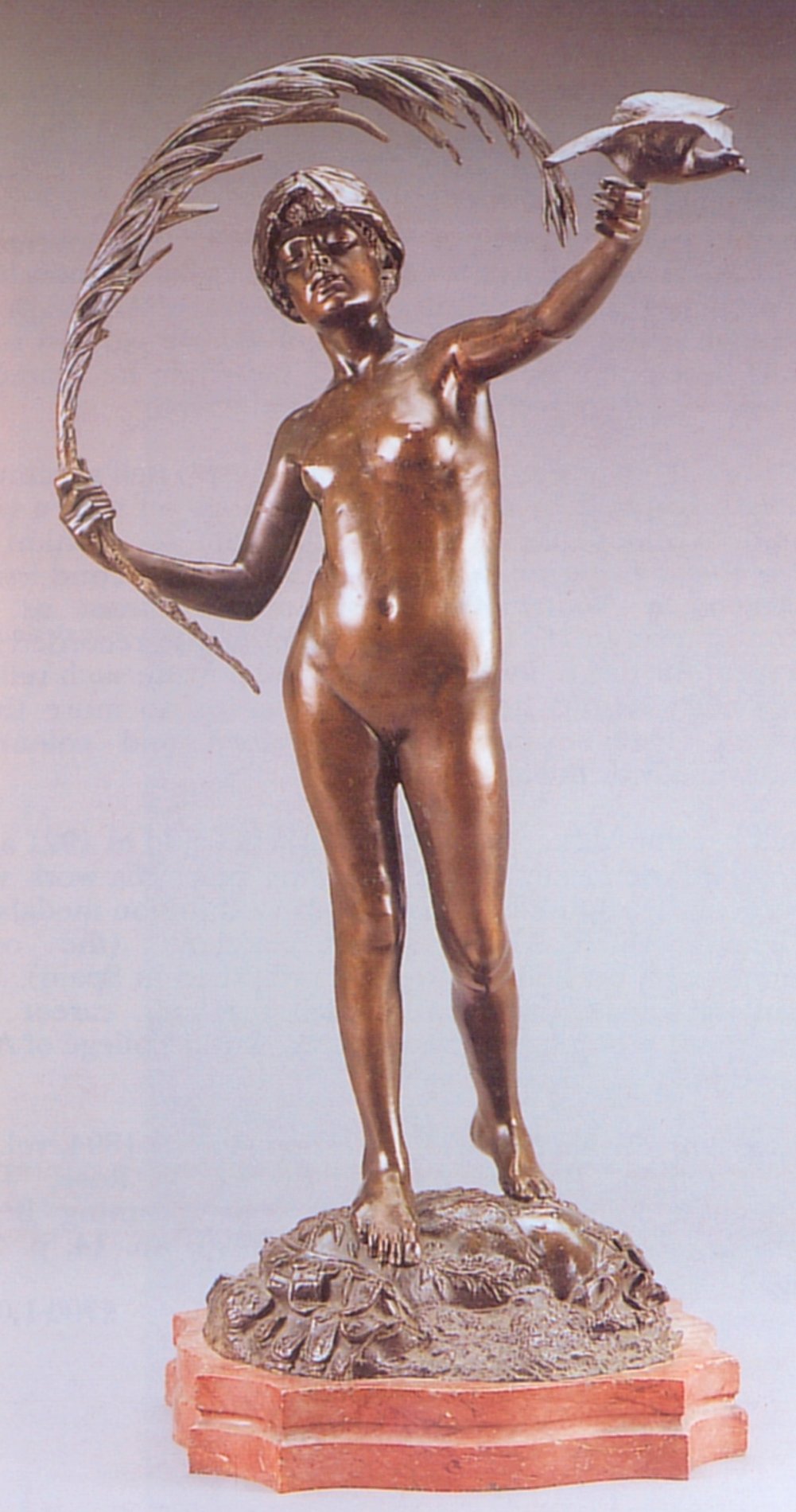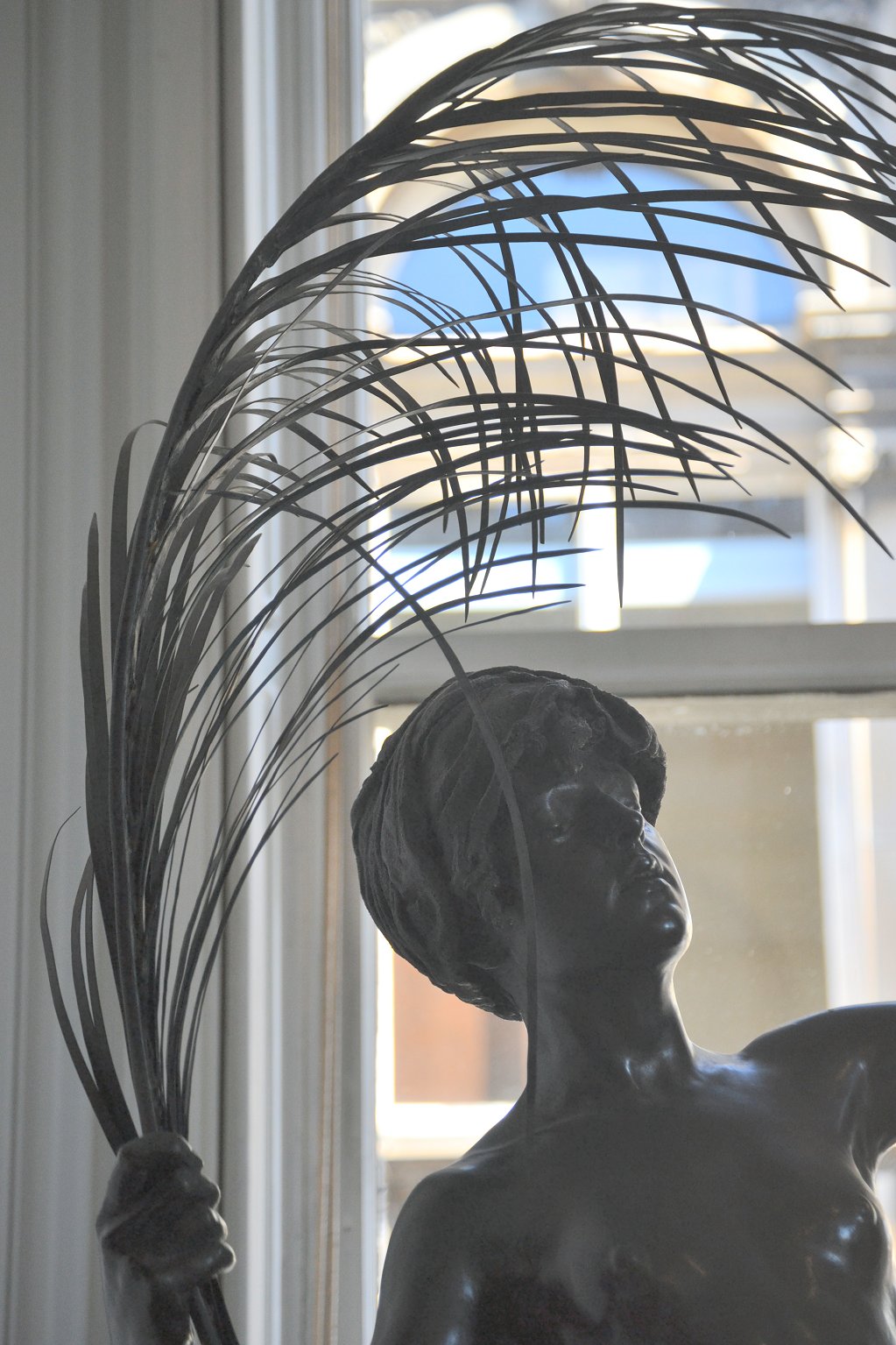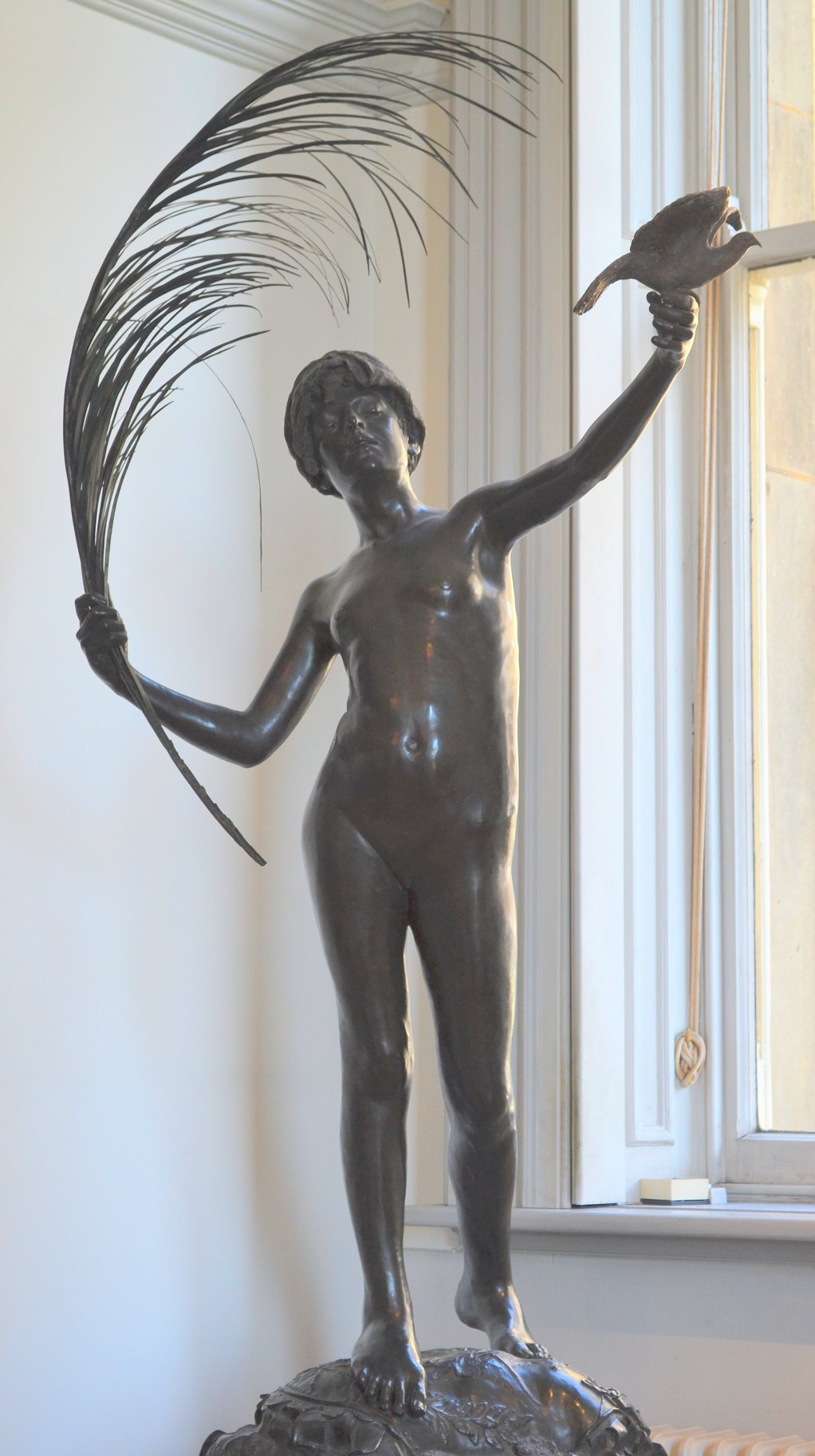 ![]() ![]() ![]() ![]() ![]() ![]() ![]() The spirit of Folly stands on the edge of a cliff beckoning us to follow. And all too often, human nature being what it is, we do... This was the only Tate statue by Ford I got to photograph that wasn’t in a glass case. There were still a few focus and exposure issues, but I don’t think the pictures came out too bad under the circumstances. With none of the ancillary decoration of the other statues this is by far the simplest of the three Ford works on display, but no less assured in its command of facial expression and body language. Peace (1887) Found photos: old book engraving and three bronze reproductions ![]() ![]() ![]() ![]() (1) Bronze statuette, colour (2, 3, 4) Lifesize bronze at the Walker Art Gallery, Liverpool, Flickr images; two by Sam the Sham and the Photos, December 2007, and one by Sheepdog Rex, January 2012 ![]() ![]() ![]() ![]() The figure of Peace holds an enormous palm frond and releases a dove - except in the upper left-hand bronze version, where the bird has evidently flown (possibly into the hands of an art thief). Speaking of Ford’s command of facial and body language... in this piece the girl’s face wears an expression of almost ecstatic euphoria. Given her tender years, maybe it’s best not to explore that in any great detail. The two pictures at bottom centre and right are from Flickr, with links to the relevant pages. They were taken at the Walker Art Gallery in Liverpool. I subsequently visited Liverpool myself, and my own photos of Peace can be seen below.