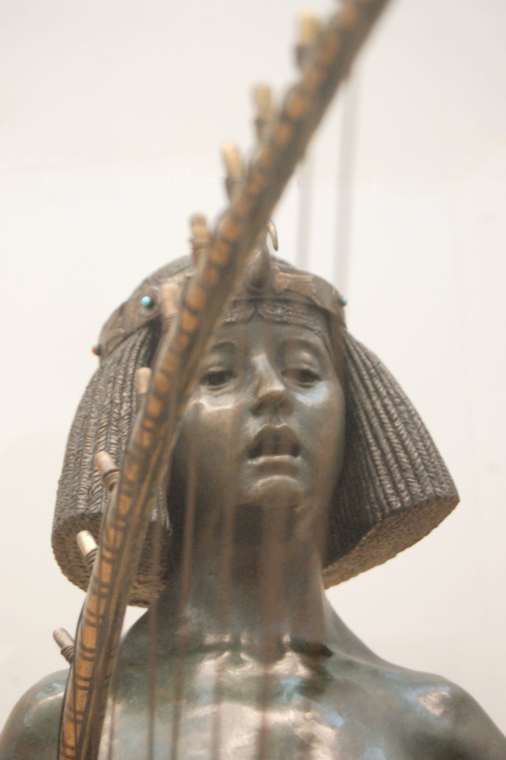 ![]() ![]() ![]() ![]() ![]() ![]() ![]() ![]() ![]() ![]() ![]() ![]() ![]() ![]() ![]() ![]() ![]() ![]() ![]() ![]() ![]() ![]() ![]() ![]() ![]() ![]() ![]() ![]() ![]() ![]() Astonishingly, for most of its life The Singer’s polychrome glory was hidden beneath a layer of uniform brown varnish, which was apparently still there when the vintage black and white photographs above were taken. It wasn’t until the 1990s that the Tate’s restoration experts removed the varnish, and through painstaking research into Ford’s original materials and methods were able to restore the original colour scheme. Judging by the vintage photographs a couple of small features have been lost to the ravages of time: the curled spike on the ibis’s crown at the base of the harp, and a feature at the tip of the harp itself. These ommissions don’t really detract from the statue’s aesthetic value, though it would be nice if they could be replaced. The statue originally stood on a tall pedestal so that viewers had to look up to see her face. In the 21st century she just has to make do with a glass and plastic display case like all the other Tate statues. Thanks to the Tate’s restorers, we can admire all the detail that Ford lavished on the creation of this statue. As well as all the multicoloured decoration on the harp, every string has to be precisely placed so the girl appears to be playing it. The fabric of the girl’s headdress is precisely delineated; her metal coronet is also finely-detailed and set with coloured stones. Even the ibis-head decoration at the front has realistic mottling on its skin, while the ribbon at the back falls in convincing folds. And that’s before I even mention the other ibis decoration at the base of the harp with its pharaonic headdress and crown, or the patterned reliefs on the statue’s pedestal. The figure of the girl herself shows the same precise attention to detail not only in its modelling but in the way her expression, pose and body language capture her intense concentration and nervous energy. All in all, I might dexcribe The Singer as a tour de force of the sculptor’s art, if I were the sort of person who used pretentious phrases like that. Applause (1893) Tate Britain Gallery, London New Sculpture exhibition, August-September 2010 Walk Through British Art: 1890 Room, December 2012
