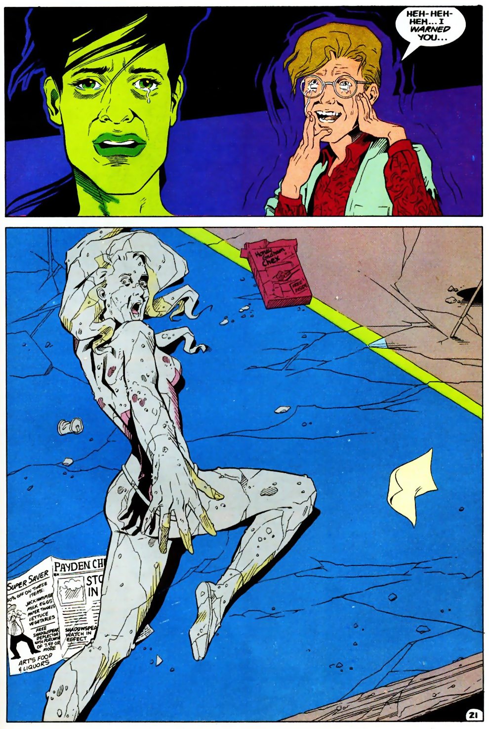 by the Grey Gargoyle, who taunts her in her petrified state. Pretty good