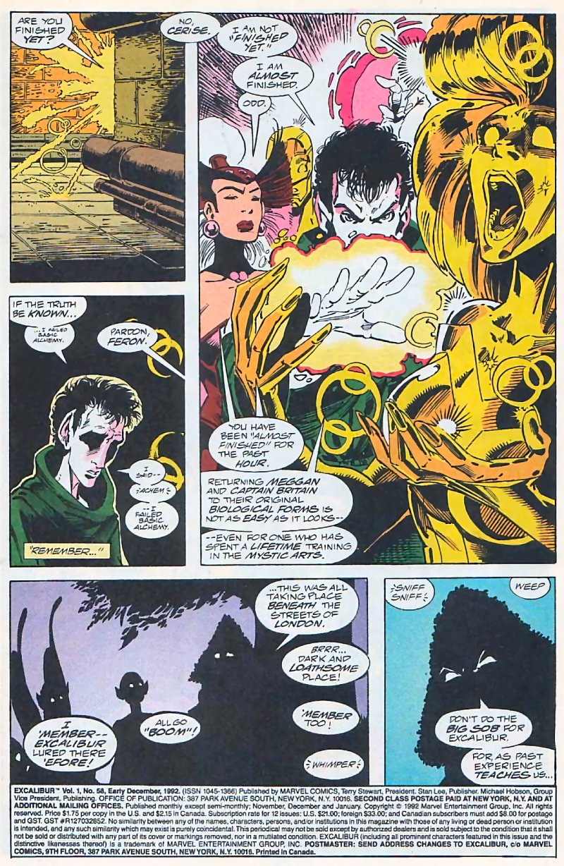 Excalibur #86: As the M'kraan Crystal effects hit Earth (just pre-Age of Apocalypse mini-series), Kitty, Meggan and the rest of the team are hit by the effect and turn to crystal. From what I can tell, each "X" team that month had an ending page where they were turned to crystal. I don't have numbers on the others...yet. [Marvel]