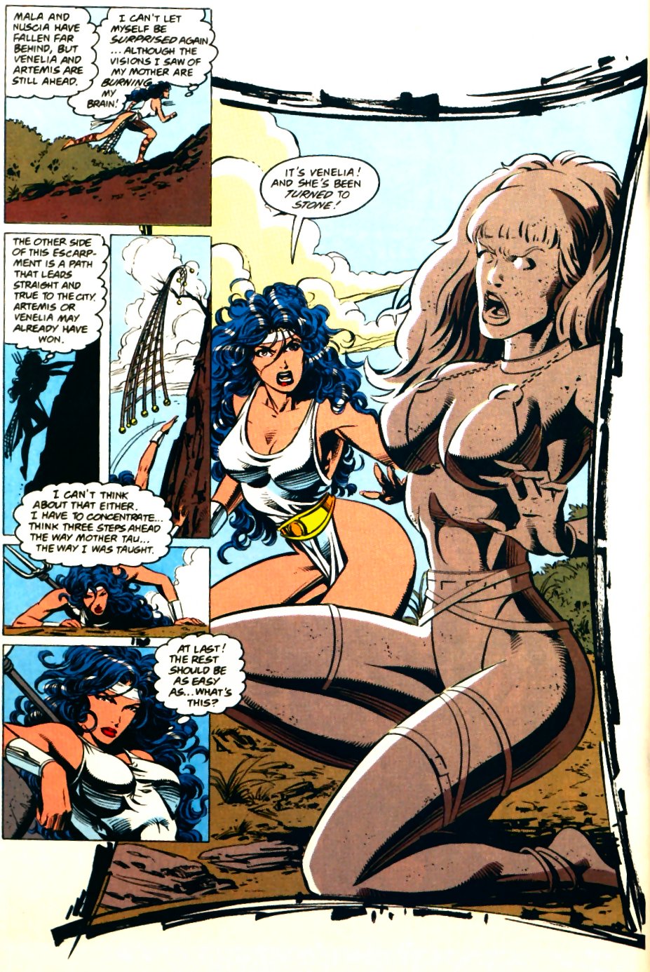 Artemis are turned to stone by the gorgon Medusa. Nice full page shot of