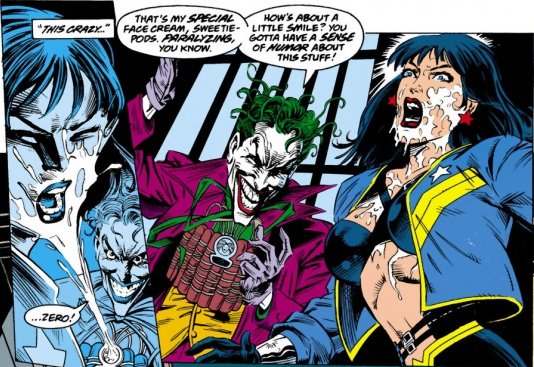 paralyzed by some spray from the Joker's flower. Nice "Fear of God" expression,