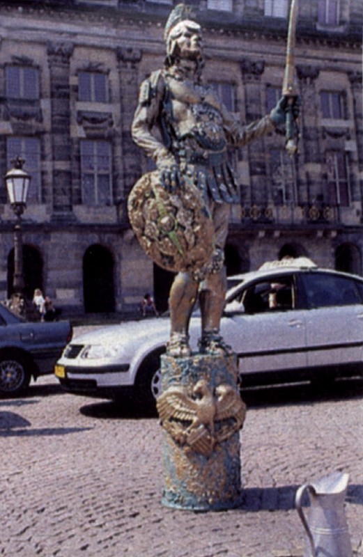 Recently I received some mail from Italy. Being a living statue in a country where solid Michelangeloes, Cellinis and Canovas crowd on every street corner (o.k., I'm exaggerating a bit, but you'll catch my drift) can't be easy, so I'm happy to include the link to some work of an Italian living statue performer here, and it's a convincing one too.