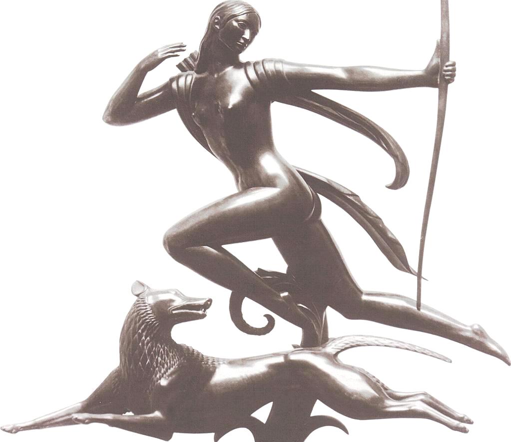 Paul Howard Manship is one of the foremost American sculptors of the 20th Century. His best known works include Dancer with Gazelles, Indian Hunter with his Dog, Lyric Muse, Diana, Actaeon, and the Prometheus Fountain in Rockefeller Plaza, New York. Diana and Dancer statuettes | Diana and Actaeon, life-size
