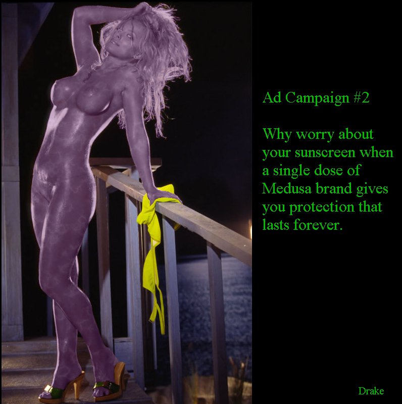 These pictures contain adult material.  All viewers under the age of 18 should leave now.   All artwork is the sole property of the artist (Drake).  Any unauthorized reproduction or publication is prohibited.  If you would like to contribute photos, artwork or stories to The Medusa Realm, please e-mail me at medusa@many-realms.net to submit.