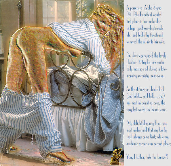 | These pictures contain adult material. All viewers under the age of 18 should leave now. All artwork is the sole property of the artist (Rodin). Any unauthorized reproduction or publication is prohibited. If you would like to contribute photos, artwork or stories to The Medusa Realm, please e-mail me at medusa@many-realms.net to submit. |