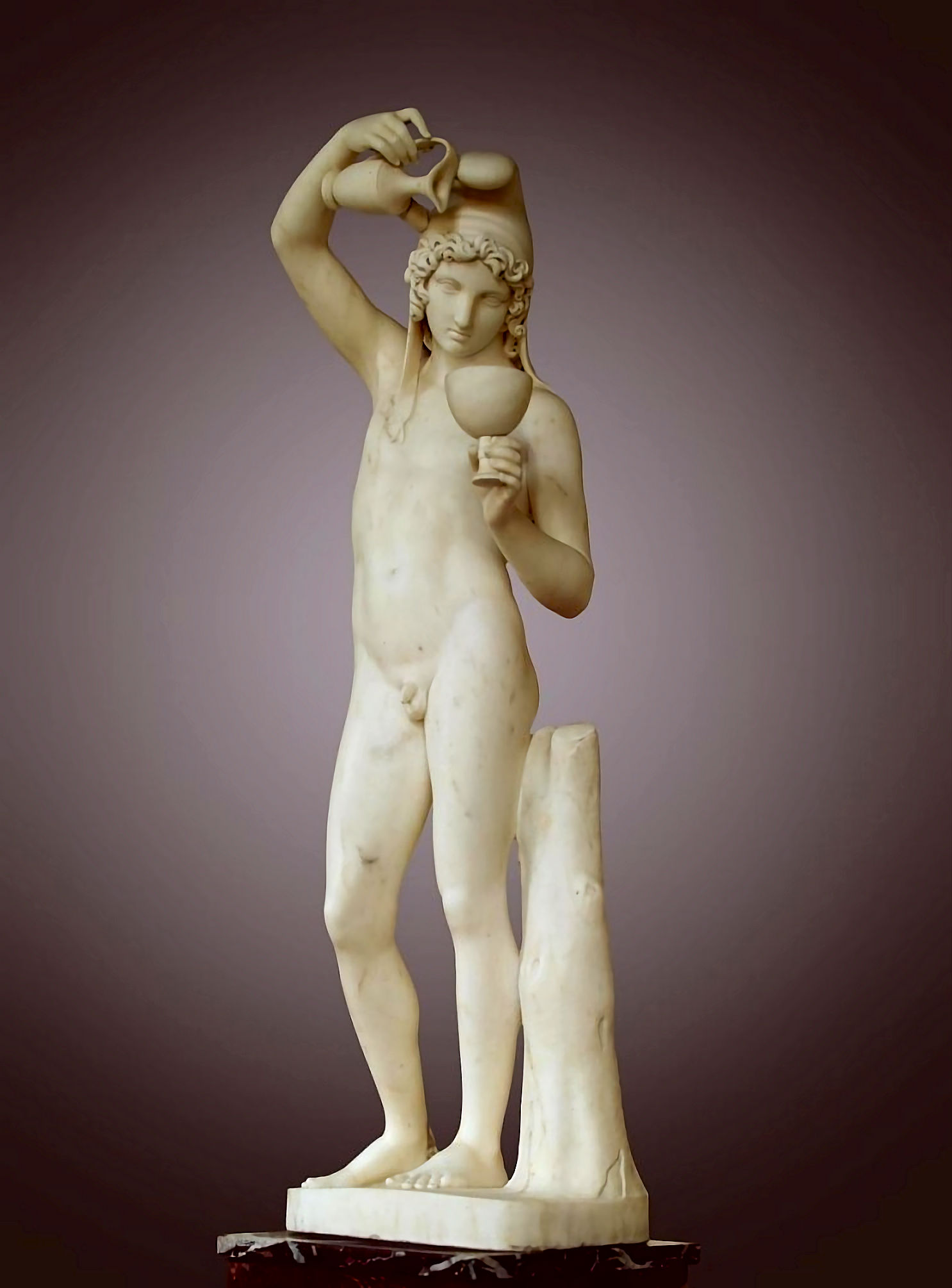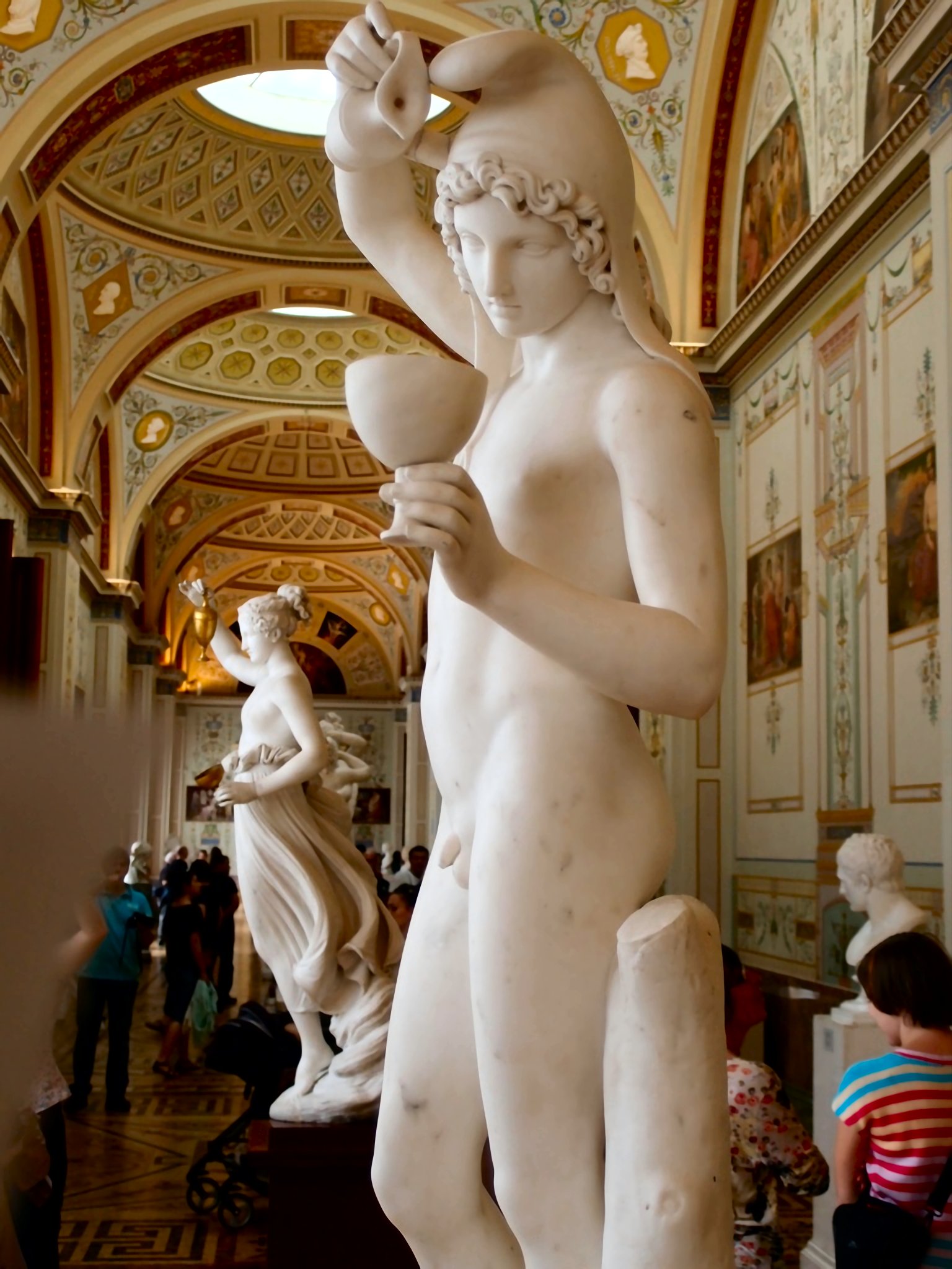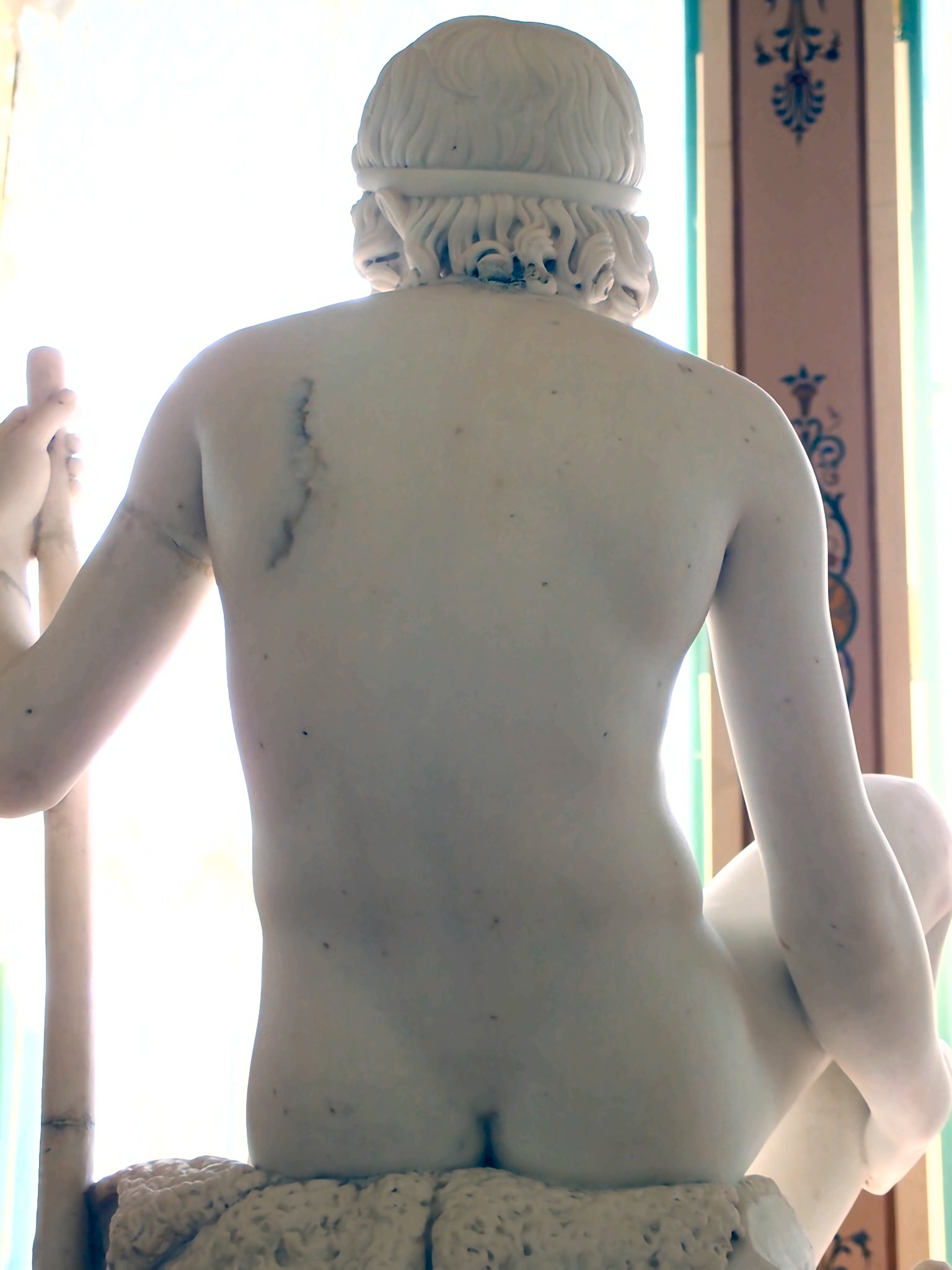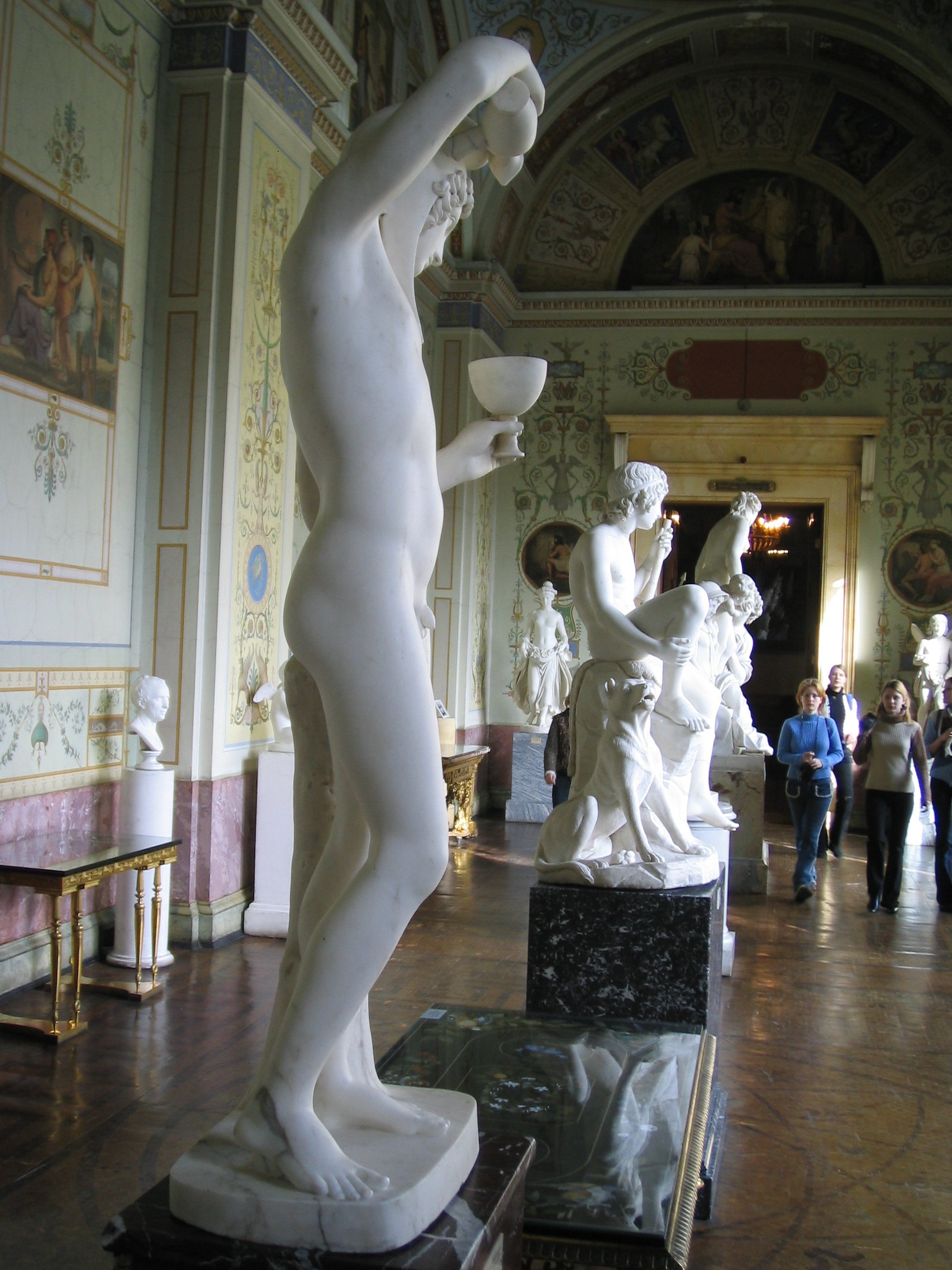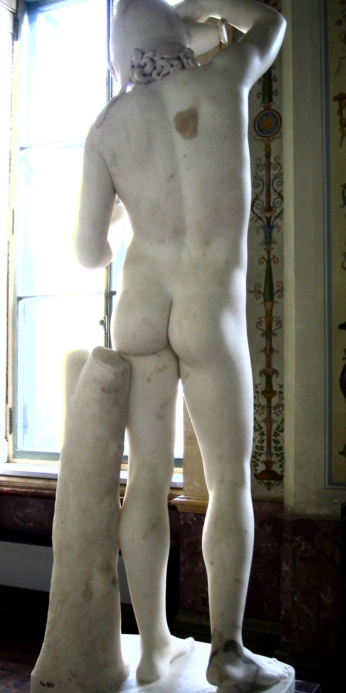 The version in the Hermitage in St Petersburg is thought to be the first carved and bears the distinct marks of an accident at Thorvaldsen’s studio in Rome when the floor collapsed and its head and arm were broken off. I suspect that the now rather obvious breaks were less clear when it was first repaired.