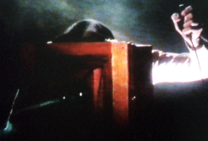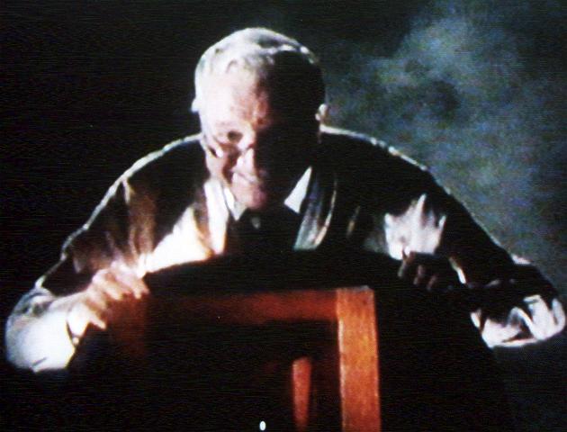 BRENDA drinks the drugged wine. MR BENJAMIN raises his glass to MRS BENJAMIN. MRS BENJAMIN leads BRENDA away. DISSOLVE TO: SCENE 5 INT OffICE. JOAN is still waiting. MAN (OOV) Miss [?]Morton? JOAN Here I am. MAN Ah. Follow me, please. JOAN follows. Finally! DISSOLVE TO: SCENE 6 Video clip of Scene 6 (Real Media, 2.27 Mb) INT ONE OF A KIND STORE - STUDIO AT REAR. The background is plain black, and there is a little atmospheric smoke. Music plays quietly. BRENDA is still wearing the sequined dress. MRS BENJAMIN Lovely. Now you relax and move with the music. Let yourself go, and Daddy will take some nice pictures of you...just being beautiful. MR BENJAMIN is standing behind an old-fashioned wooden plate camera, complete with a dark hood and a bulb shutter release. Montage of BRENDA trying out various poses. MRS BENJAMIN Very nice. MR BENJAMIN Fine. Hold it! MR BENJAMIN clicks the shutter. As he does so a green flash appears in the lens. BRENDA suddenly looks uncomfortable. BRENDA That’s a really funny camera. What kind is it? MR BENJAMIN Oh, this is the camera that makes our models so special (chuckles). Ready? BRENDA poses. MR BENJAMIN And a little higher...fine. Hold it! This time when MR BENJAMIN clicks the shutter we see some kind of diffuse green rays emerge from the lens and sweep over BRENDA’s body...then again.... MR BENJAMIN (Echoing) Hold it...hold it...hold it.... MRS BENJAMIN arrives and stands next to MR BENJAMIN. The lighting and smoke give them both a rather sinister appearance. MRS BENJAMIN This could be our best one! ![]() BRENDA continues to pose, but her movements are becoming a little stiff. MRS BENJAMIN Very nice, Brenda. (Echoing) Move with the music...music...music... The green rays strike BRENDA again, and she raises a hand to her head as if she feels a sudden migraine. MR BENJAMIN Hold it! More green rays emerge from the camera and strike BRENDA, who is now looking distinctly uncomfortable. ![]() MRS BENJAMIN’S VOICE (Flashback, echoing) Let yourself go...go...go.... BRENDA’S VOICE (Flashback, echoing) I’ve always wanted to be a model...model...model.... MRS BENJAMIN’S VOICE (Flashback, echoing) Daddy will take some nice pictures...pictures...pictures.... BRENDA’S POV: The blurred figure of MRS BENJAMIN looms out of the darkness. MRS BENJAMIN Very nice. Very nice, Brenda. The camera shoots more rays. MR BENJAMIN’S VOICE (Flashback, echoing) And a little higher...higher...higher.... More rays emerge from the camera. BRENDA stiffly raises her hand to her head...and freezes into immobility! The camera flashes again, and again, and each time it does so her body looks shinier and more like plastic! MR BENJAMIN’S VOICE (Flashback, echoing) Hold it!...Hold it!...Hold it!....... CUT TO: SCENE 7 INT. OffICE. JOAN is preparing to leave. JOAN (Thinks) That took forever. It wasn’t even worth it. I wonder how Brenda did? JOAN exchanges insincere smiles with the SECRETARY as she leaves. DISSOLVE TO: SCENE 8 INT ONE OF A KIND STORE - SOMEWHERE OUT BACK. CU Model photo of BRENDA as MR BENJAMIN takes it out of a developing tray. For a moment we hear Brenda’s distorted voice...CUT TO REAR VIEW of MRS BENJAMIN combing BRENDA’s hair...except that BRENDA’s hair now seems more like a wig. MRS BENJAMIN keeps combing and primping throughout this scene. MRS BENJAMIN You’re such a pretty girl, with such nice hair. I’m not just saying this! BRENDA doesn’t reply. Enter MR BENJAMIN. MR BENJAMIN To think, Mother, you said I was losing my eye! I can still see a pretty girl and tell when she’s just right. The shop doorbell rings. MRS BENJAMIN Someone in the shop. Shall I go? MR BENJAMIN Take it easy, I’ll see who it is. (Exits.) MRS BENJAMIN (To BRENDA) You could be one of my all-time favorites, Miss Brenda. BRENDA still doesn’t reply, or move a muscle. CUT TO: SCENE 9 INT ONE OF A KIND STORE - front of store. Montage of close-ups of the model photos. Again we hear distorted voices and cries of alarm. We pull back to see that JOAN is admiring the photos. MR BENJAMIN has just arrived behind her. MR BENJAMIN Can I help you? ![]() JOAN Oh, you startled me. MR BENJAMIN Oh, forgive me, I’m sorry...we have some very lovely designer prints in stock.... JOAN Actually I was just looking for my friend Brenda. CUT TO: CU BRENDA’S legs, wearing the sequined dress. BRENDA doesn’t move as the camera travels slowly upward...then we CUT BACK to JOAN and MR BENJAMIN. ![]() JOAN (Continuing) She came in a few hours ago. My height, blonde. MR BENJAMIN Oh, asking about modeling. JOAN Yes. CUT TO: close up as before, as the camera travels up to BRENDA’S waist. She still doesn’t move...then we CUT BACK to JOAN and MR BENJAMIN. MR BENJAMIN Lovely girl. Perfect, just perfect. We loved her instantly. Look at her test photo. MR BENJAMIN shows JOAN the photo of BRENDA. Again we hear Brenda’s distorted voice. ![]() MR BENJAMIN (Continuing) We already sent her out on her first job. CUT TO: Close up of BRENDA...lying face-up in a straw-lined crate. Her hair is a wig and her face looks like plastic. She doesn’t make the slightest movement. She has been turned into a mannequin! Once again we hear her distorted voice...then we CUT BACK to JOAN and MR BENJAMIN. MR BENJAMIN Conrad’s. CUT TO: The lid is placed on the crate. The shipping label reads CONRAD’S DEPT. STORE - FRAGILE...then we CUT BACK to JOAN and MR BENJAMIN. ![]() JOAN Conrad’s? I can’t believe it! Out on a modeling job! CUT TO: The crate lid being nailed shuts as JOAN’S voice echoes... JOAN’S VOICE (Echoes) A modeling job! ...Then we CUT BACK to JOAN and MR BENJAMIN. MR BENJAMIN A very fortunate girl. She was in the right place at the right time. CUT TO: Someone just out of vision pushes the crate out of shot...then we CUT BACK to JOAN and MR BENJAMIN. JOAN Say, what about me? Could I be a model? Brief shot of model photo on wall. JOAN (Continuing) If she can, I can. CUT TO: Brief flashback to BRENDA free